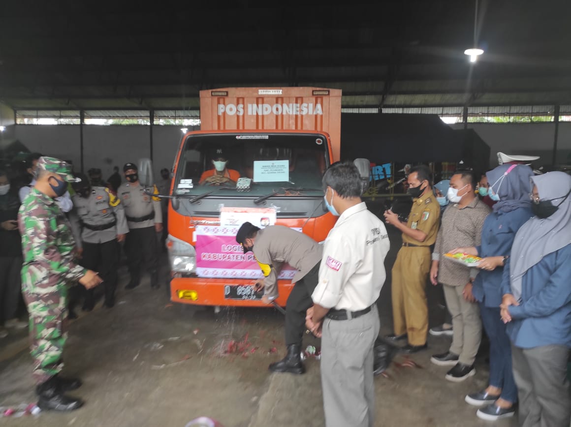 MEDIAHISTORI, PESAWARAN-Komisi Pemilihan Umum (KPU) Kabupaten Pesawaran mulai melakukan pendistribusian logistik Pilkada ke kecamatan-kecamatan se-Kabupaten Pesawaran, Senin (7/12/2020).