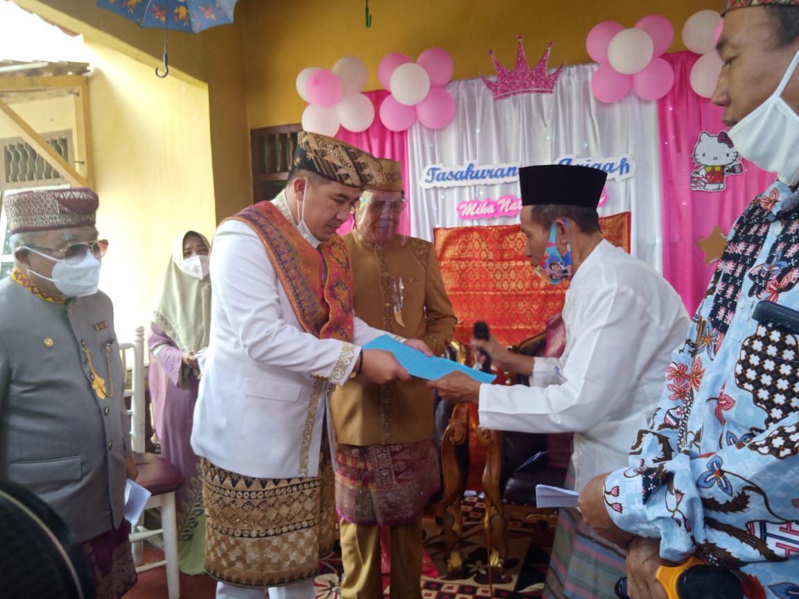 Dalam kesempatan itu, Bupati Dendi hadir bersama istri, Nanda Indira Dendi yang juga diberikan gelar dengan adok Ibu Makhga.