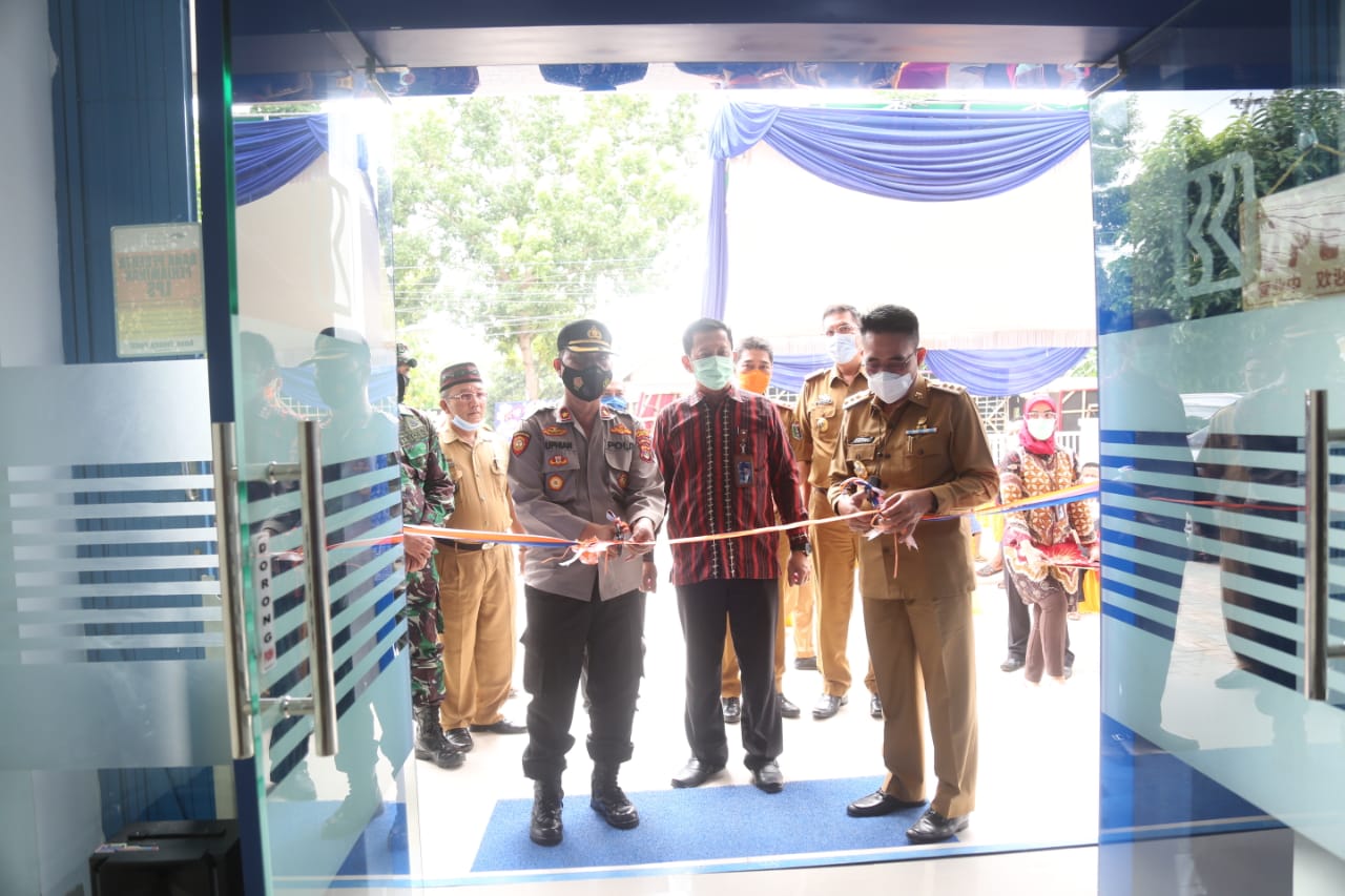 LAMPUNG TIMUR-Bupati Lampung Timur (Lamtim) Zaiful Bokhari meresmikan Gedung Baru BRI Unit Sukadana Cabang Metro di Desa Sukadana Ilir Kecamatan Sukadana kabupaten setempat, Selasa (19/1/2021).