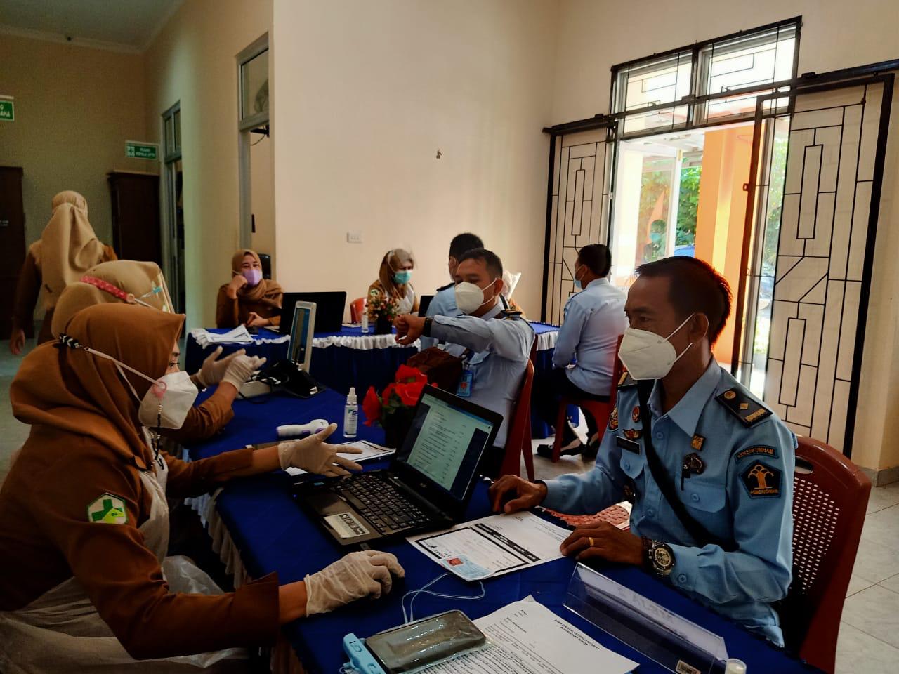 Sebelum disuntik vaksin CoronaVac buatan Sinovac Biotech Ltd, para petugas lapas diperiksa kesehatannya terlebih dahulu oleh para petugas medis. Hal tersebut dilakukan untuk mengetahui kondisi fisik dan riwayat kesehatannya. Pemberian vaksinasi dilaksanakan dengan menjaga protokol kesehatan. (*/rilis)