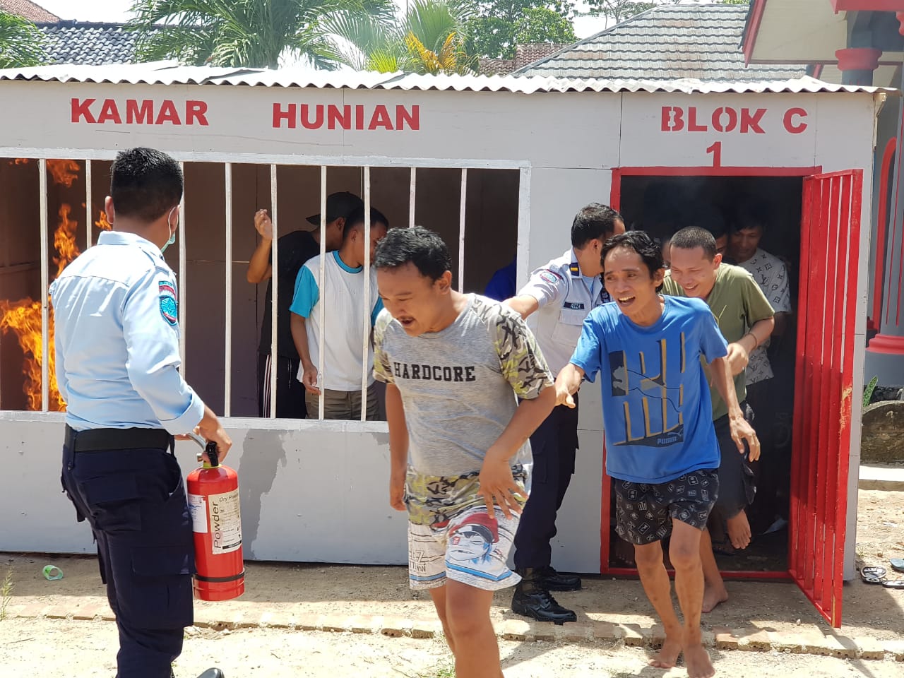 “Karena lapas ini merupakan objek vital untuk itu kami perlu memberikan pelatihan, ilmu ketahuan terkait bagaimana jika terjadi pemadan kebakaran. Kami memberikan pembekalan kepada warga binaan dan kepada petugas bagaimana mengantisipasi cara menanggulangi musibah kebakaran baik itu di kantor ataupun dirumah masing-masing,”ungkapnya usai melaksanakan kegiatan simulasi.