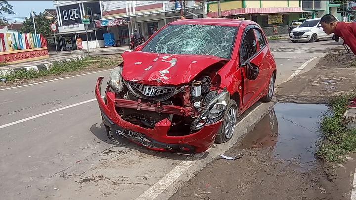 “Jadi berdasarkan keterangan pengendara dia memang dari awal sudah dalam kecepatan tinggi. Setelah menabrak sepeda motor Yamaha Mio pengendara mobil itu panik bukanya menginjak rem justru pedal gas, “terangnya.