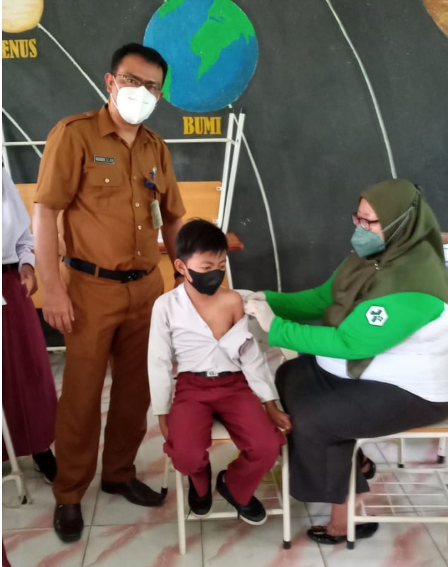 Kalangan pelajar usia 6-11 tahun juga menjadi target vaksinasi di Kelurahan Blambangan Umpu, Kecamatan Blambangan Umpu-Way Kanan. Foto dibidik baru-baru ini disalah satu sekolah. Foto : Yud