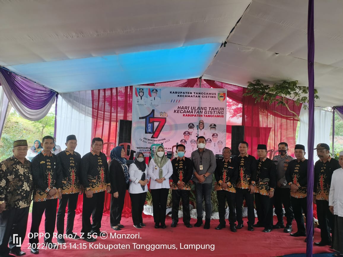 Dalam sambutannya Bupati Dewi Handajani terima kasih serta ucapan selamat ulang tahun ke-17 Kecamatan Gisting kepada camat beserta jajaran aparatur Kecamatan Gisting dan Pemerintahan Pekon se-Kecamatan Gisting serta segenap masyarakat yang telah berkontribusi dan berpartisipasi membangun serta memajukan wilayah Kecamatan Gisting.
