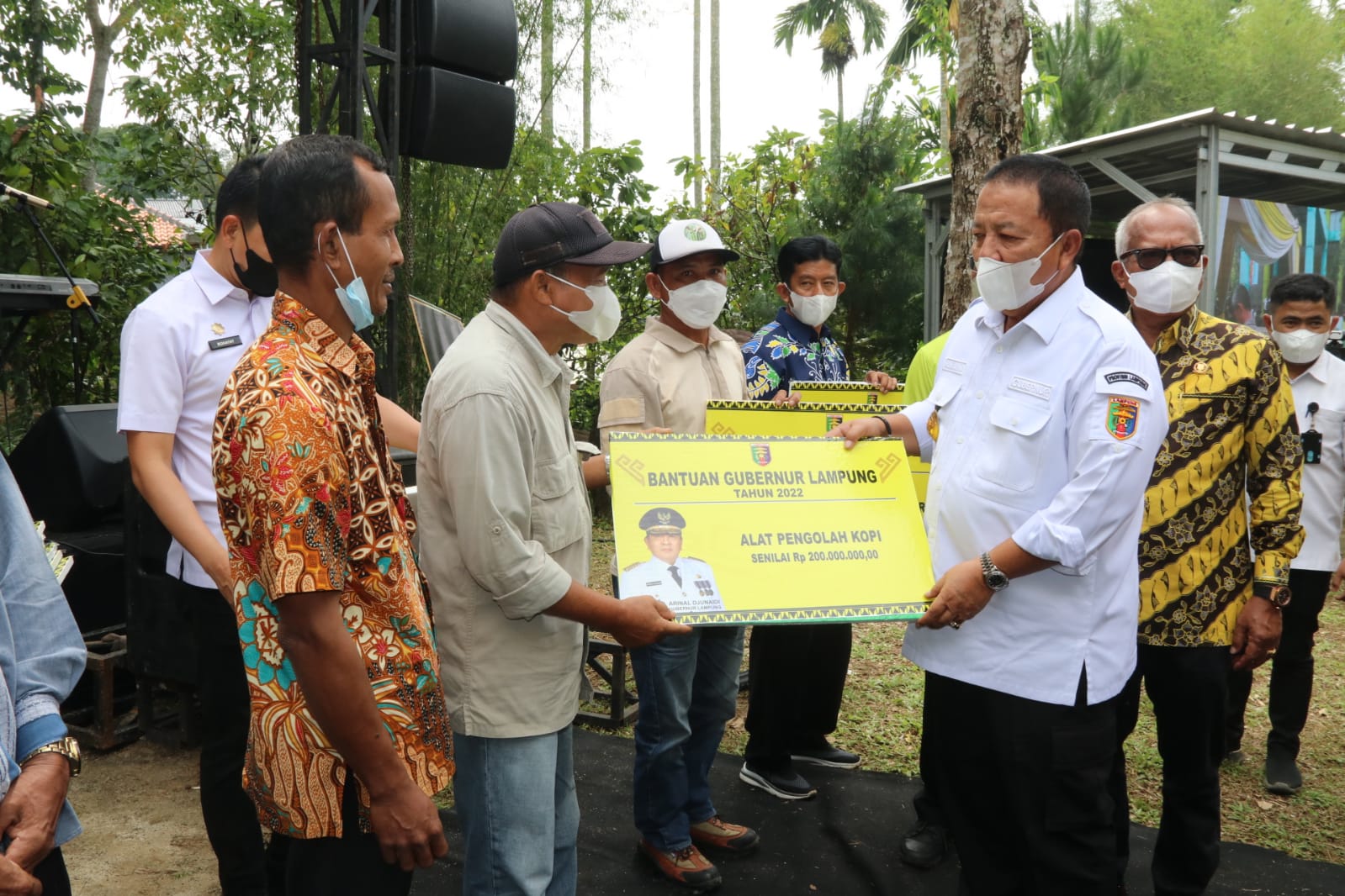 Bandar Lampung – Saat membuka acara Puncak Festival Wisata Hutan Lampung Tahun 2022, di Taman Hutan Rakyat (Tahura) Wan Abdul Rachman (WAR) Kemiling, Kamis (4/8), Gubernur Arinal juga menyerahkan sejumlah Bantuan berupa Alat Ekonomi Produktif (BAEP), diantaranya yaitu: