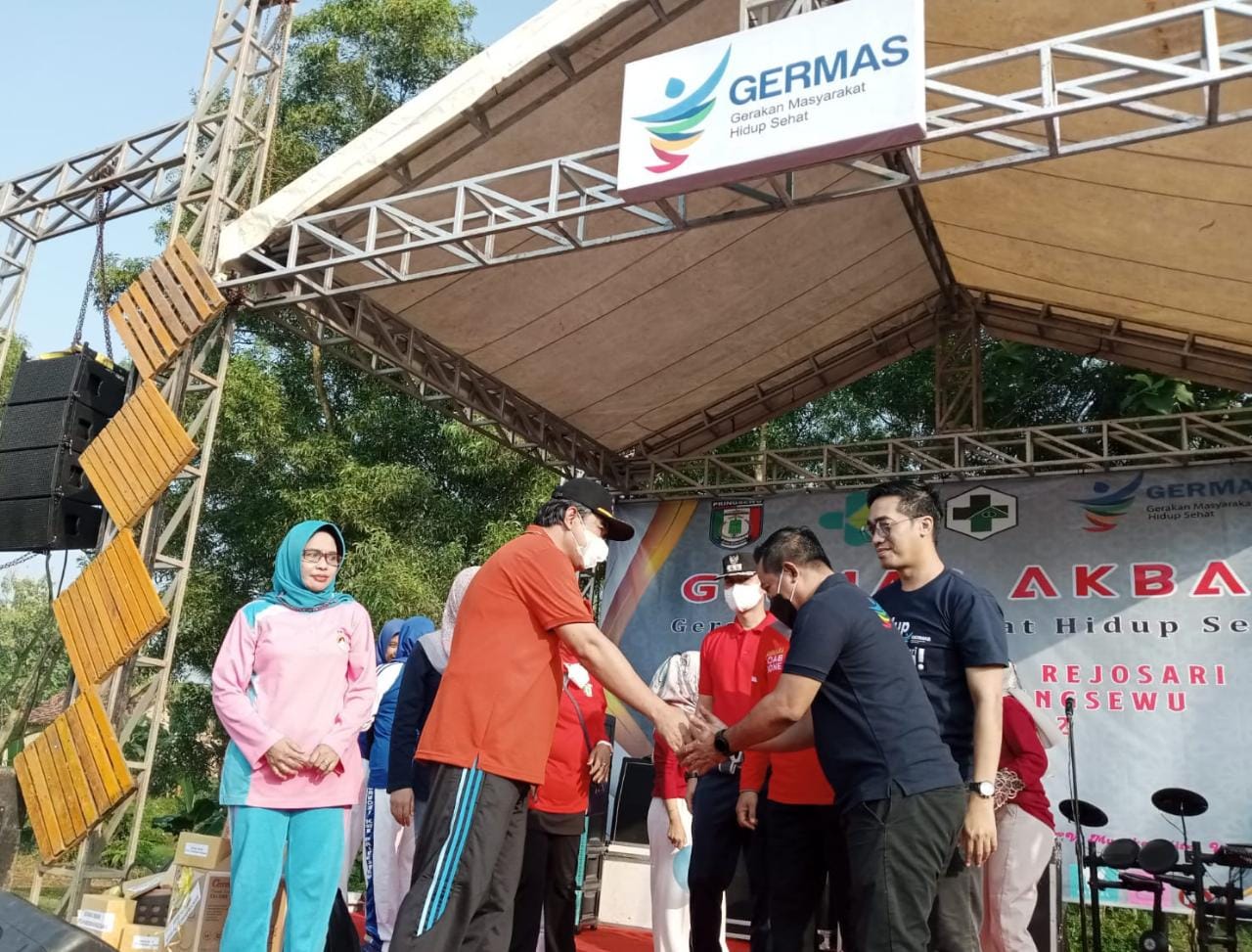 Acara Germas diisi dengan sejumlah kegiatan diantaranya senam dan makan buah bersama, pemeriksaan kesehatan serta vaksinasi Covid-19, dihadiri Ketua Dharma Wanita Persatuan Kabupaten Pringsewu Sri Prihatin Heri Iswahyudi, Kadis Kesehatan Pringsewu dr.Ulinnoha, Camat Pringsewu Moudy Ary Nazolla, S.STP., M.H., Kapolsek Pringsewu Kota Komisaris Pol. Ansori Samsul Bahri, KUPT Puskesmas Rejosari dr.Anisa, Kapekon Rejosari Khotmanudin, tokoh agama serta tokoh masyarakat setempat. Selain disediakan door prize, acara juga dimeriahkan oleh penampilan Dide Irawan (Hijau Daun) yang juga sebagai Duta Germas Pemkab Pringsewu. (*/adi/ta)