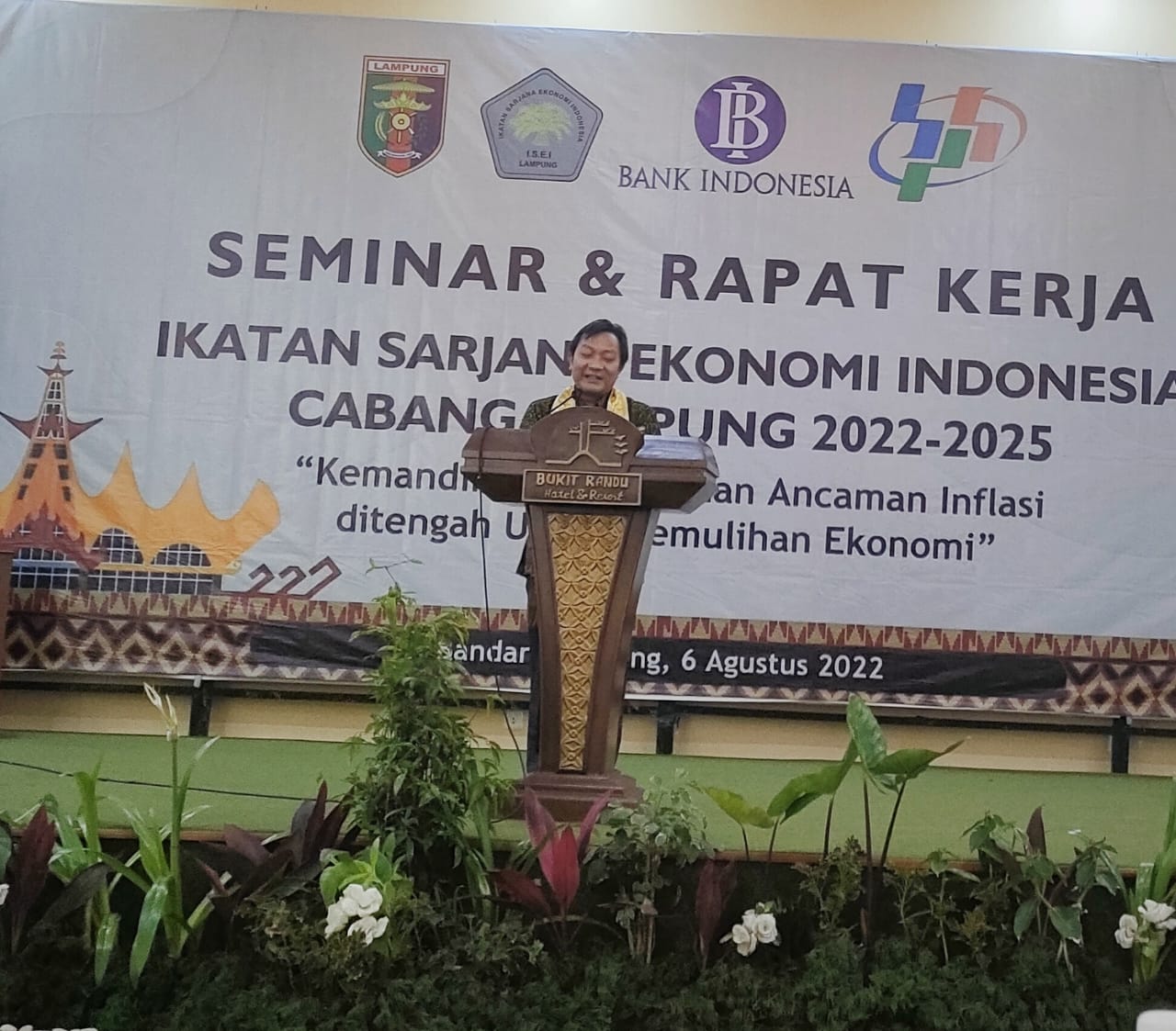 Tema yang diangkat dalam Seminar Ikatan Sarjana Ekonomi Indonesia (ISEI) Cabang Lampung pada hari ini, yaitu “Kemandirian Pangan dan Ancaman Inflasi di Tengah Upaya Pemulihan Ekonomi”.