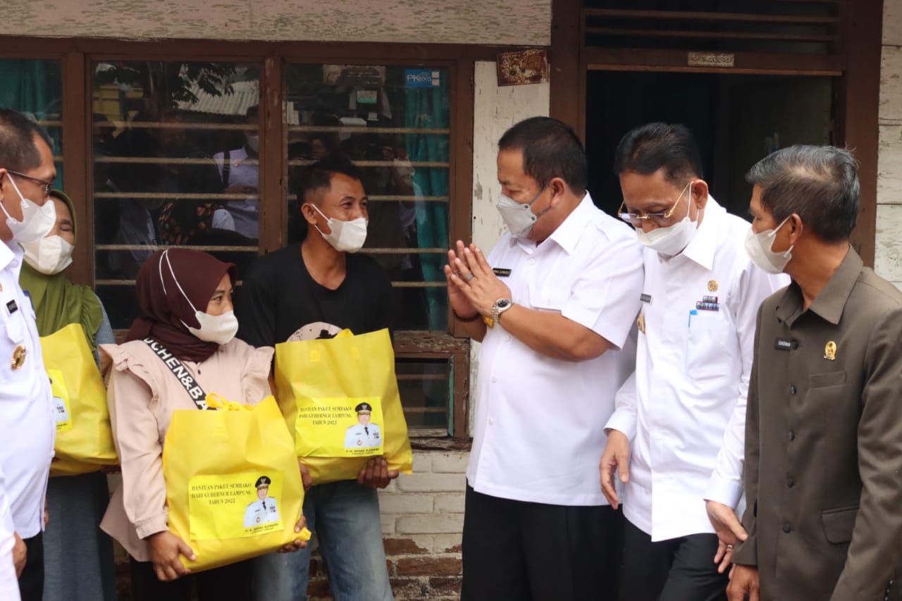 Selain di Kantor Pos, Gubernur Arinal juga menyempatkan diri mendatangi rumah warga di Kecamatan Gading Rejo, dan menyerahkan secara langsung Bantuan Pangan Non Tunai berupa sembako kepada perwakilan warga setempat.