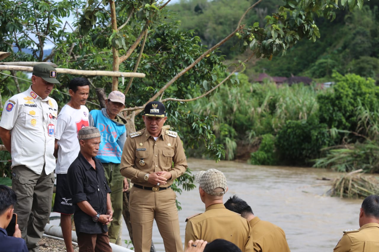 Bupati Lampung Barat (Lambar) H. Parosil Mabsus meninjau langsung lokasi terdampak bencana banjir di Pekon Kerang Kecamatan Batu Brak, Senin (14/11/2022). Foto : Ist