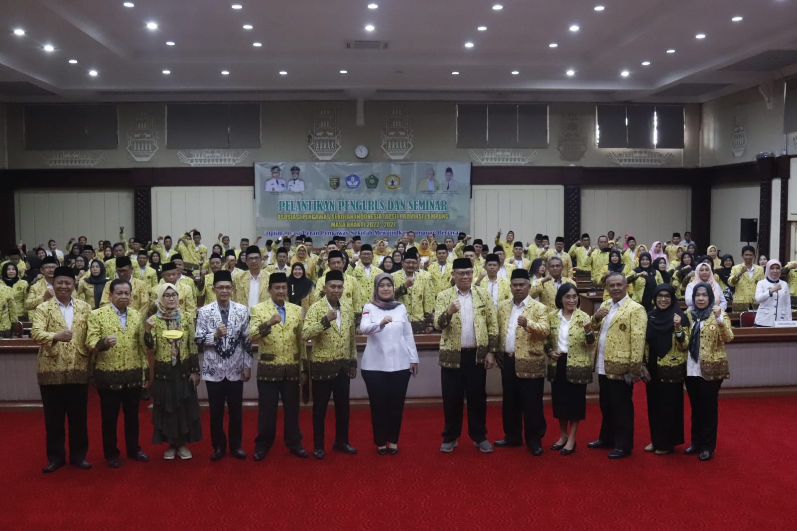 MEDIA HISTORI, BANDAR LAMPUNG – Wakil Gubernur Lampung, Chusnunia, menghadiri Pelantikan Pengurus Asosiasi Pengawas Sekolah Indonesia (APSI) Provinsi Lampung Masa Bakti 2022-2027, di Gedung Pusiban, Rabu (08/02/2023).