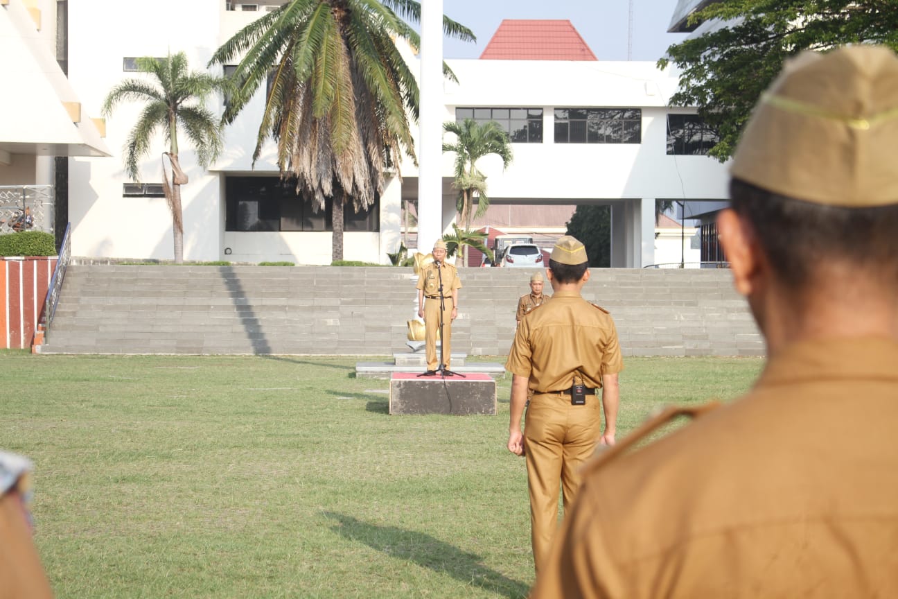 BANDAR LAMPUNG – Gubernur Lampung Arinal Djunaidi diwakili Staf Ahli Bidang Kemasyarakatan dan Sumber Daya Manusia Intizam, menjadi pembina apel gabungan mingguan dilingkungan Sekretariat Daerah Provinsi Lampung, di lapangan Korpri, Senin (12/06/2023).