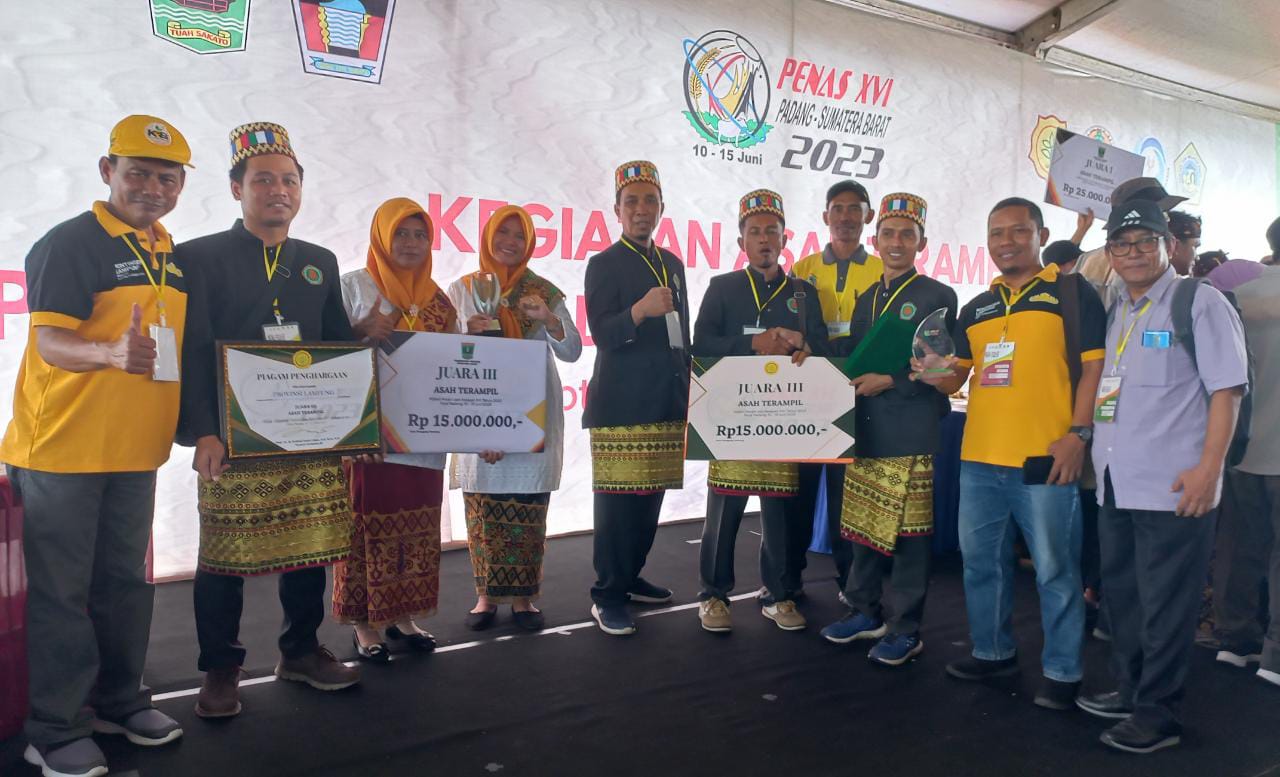 PADANG – Kontingen KTNA Provinsi Lampung meraih Juara 3 dalam Lomba Asah Terampil pada Penas XVI Tani Nelayan, di Padang, Senin (12/6/2023).