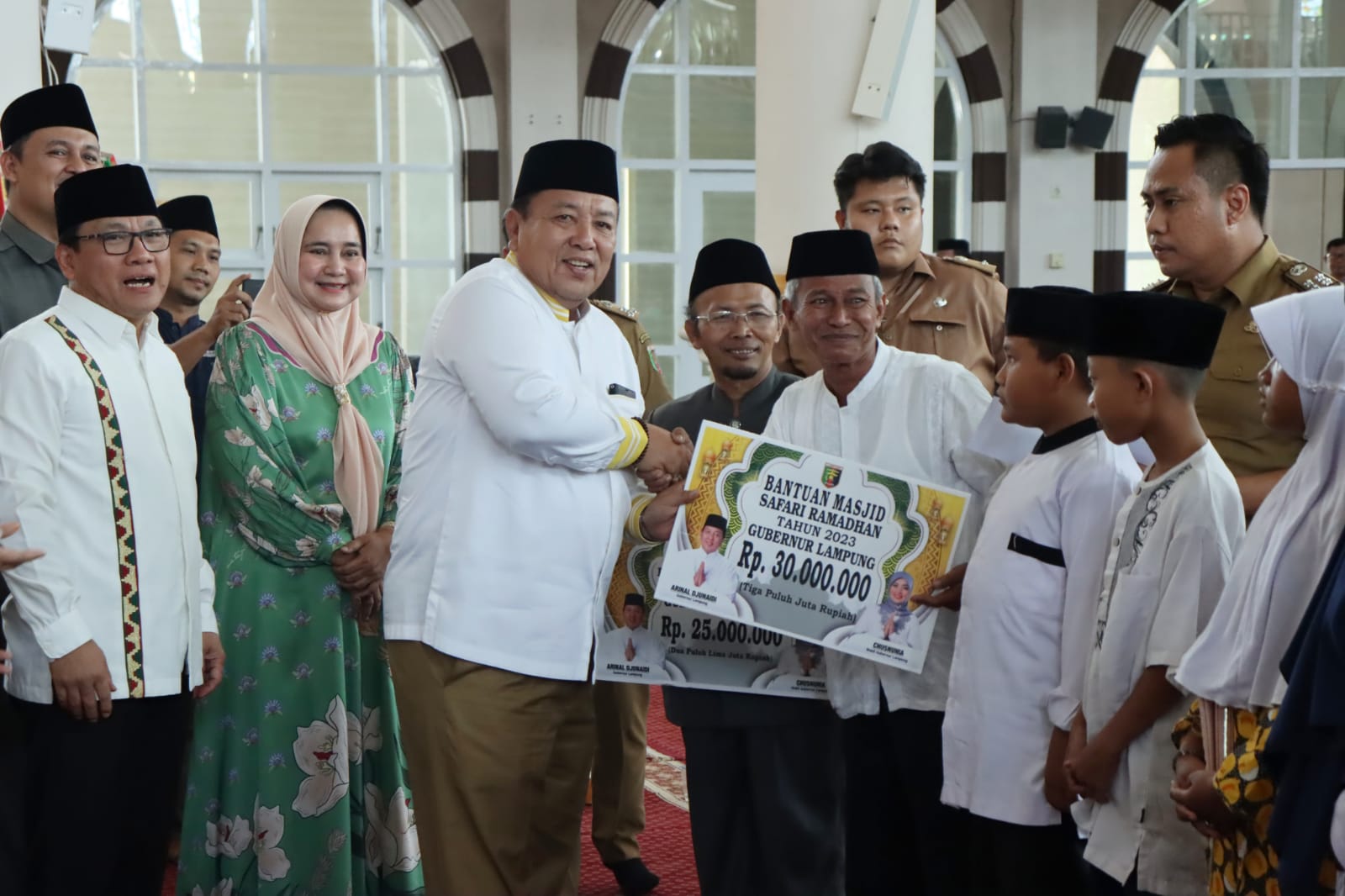 Metro, — Gubernur Lampung Arinal Djunaidi didampingi Ketua Tim Penggerak PKK Provinsi Lampung Riana Sari Arinal menghadiri pengajian akbar dalam rangka silaturahmi Pemerintah Provinsi Lampung dengan Unsur Pemerintah dan masyarakat Kota Metro bertempat di Masjid Agung Taqwa Kota Metro, Senin (24/07/2023).