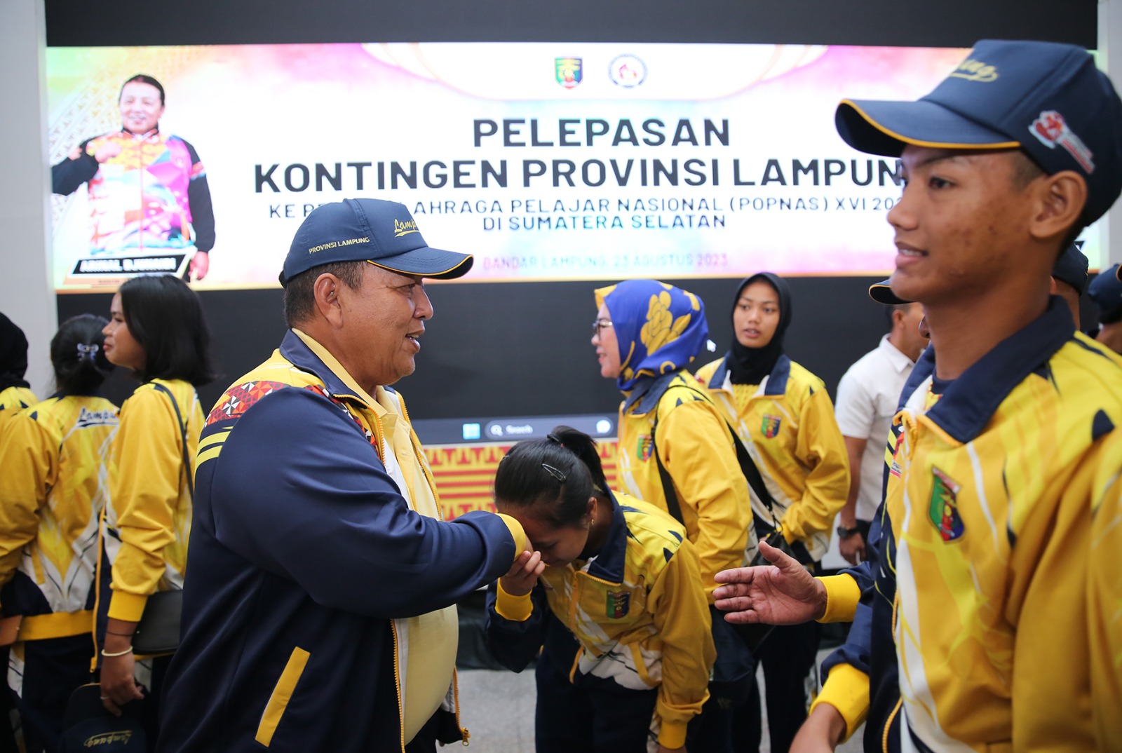 BANDARLAMPUNG – Gubernur Lampung Arinal Djunaidi melepas kontingen Pekan Olahraga Pelajar Nasional (Popnas) XVI Sumatera Selatan di Aula Mahan Agung, Rabu (23/08/2023).