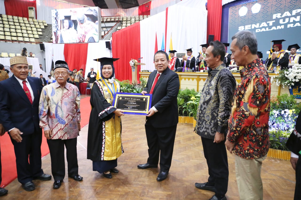 Penghargaan itu diterima Gubernur yang diserahkan oleh Rektor Unila Prof Lusmeilia Afriani saat Puncak Dies Natalis ke- 58 Unila di GSG Unila, Sabtu (23/9/2023).