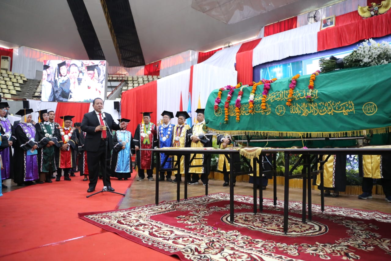 Ia mengatakan bertepatan dengan Dies Natalis Unila dan diberi kesempatan oleh keluarga almarhum agar singgah sejenak untuk dilepas, meminta seluruh keluarga besar Unila dapat mendoakan agar almarhum ditempatkan yang sebaik-baiknya disi Allah SWT.