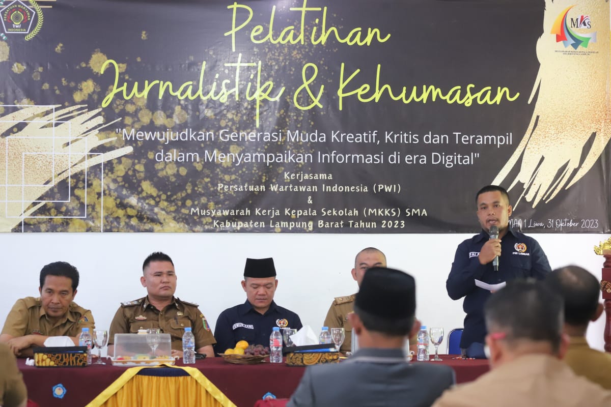 LAMPUNG BARAT- Wujudkan generasi muda kreatif, kritis dan terampil dalam menyampaikan informasi di era digital, Persatuan Wartawan Indonesia (PWI) Lampung Barat (Lambar) melakukan pelatihan jurnalistik dan kehumasan.
