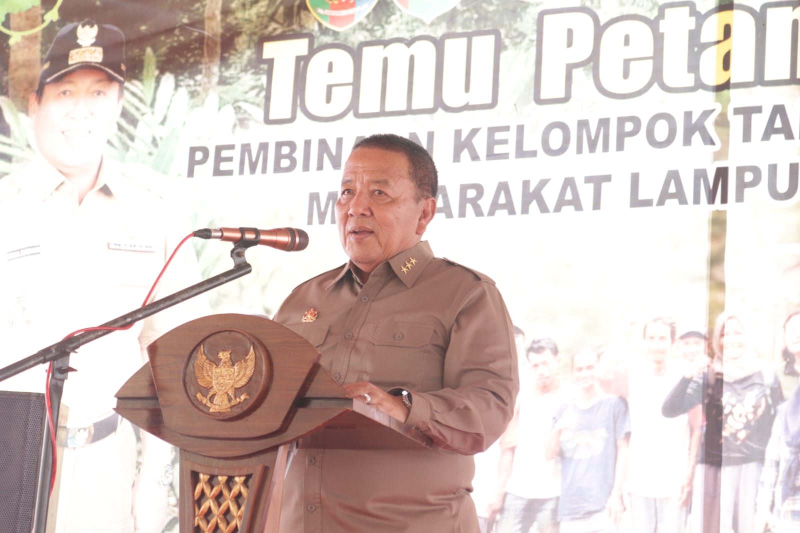 Pesawaran — Gubernur Arinal Djunaidi melakukan Pembinaan Kelompok Tani Hutan (KTH), di Lapangan Kantor Kecamatan Padang Cermin, Jumat (22/12/2023).
