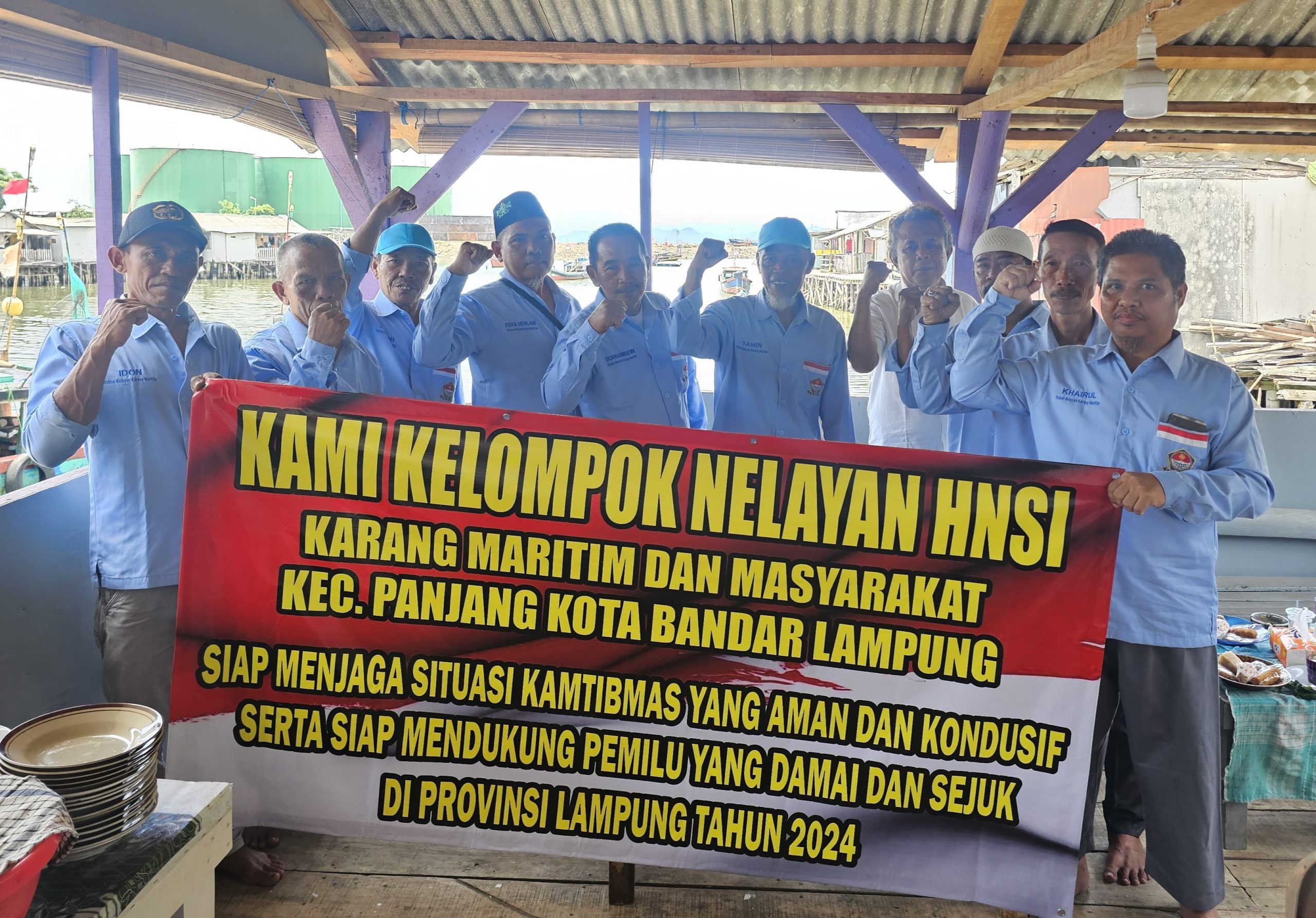 BANDAR LAMPUNG – Untuk menjaga situasi keamanan dan ketertiban, Kelompok Nelayan HNSI Karang Maritim Panjang Kota Bandar Lampung berkomitmen mendukung dan membantu pihak keamanan (POLRI) dalam hal ini Polda Lampung untuk menciptakan suasana aman dan kondusif di wilayah Provinsi Lampung, Jumat (26/01/2024).