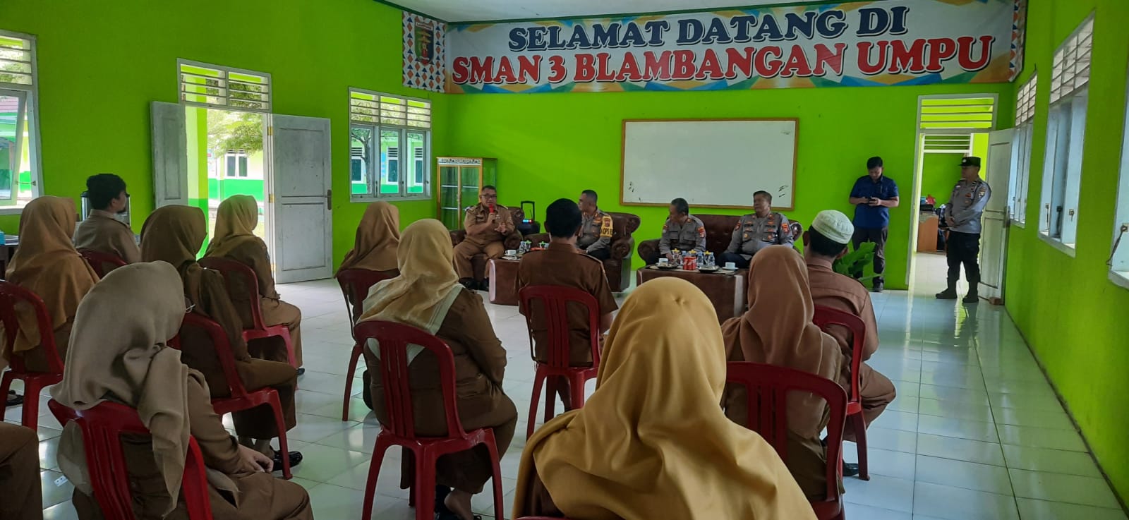 Polres Way Kanan melaksanakan kegiatan silahturahmi bertajuk “Jumat Curhat” saat menyambangi Sekolah di SMA Negeri 3 Blambangan Umpu Kampung Umpu Kencana Kecamatan Blambangan Umpu Kabupaten Way Kanan. Jum’at (09/02/2024).