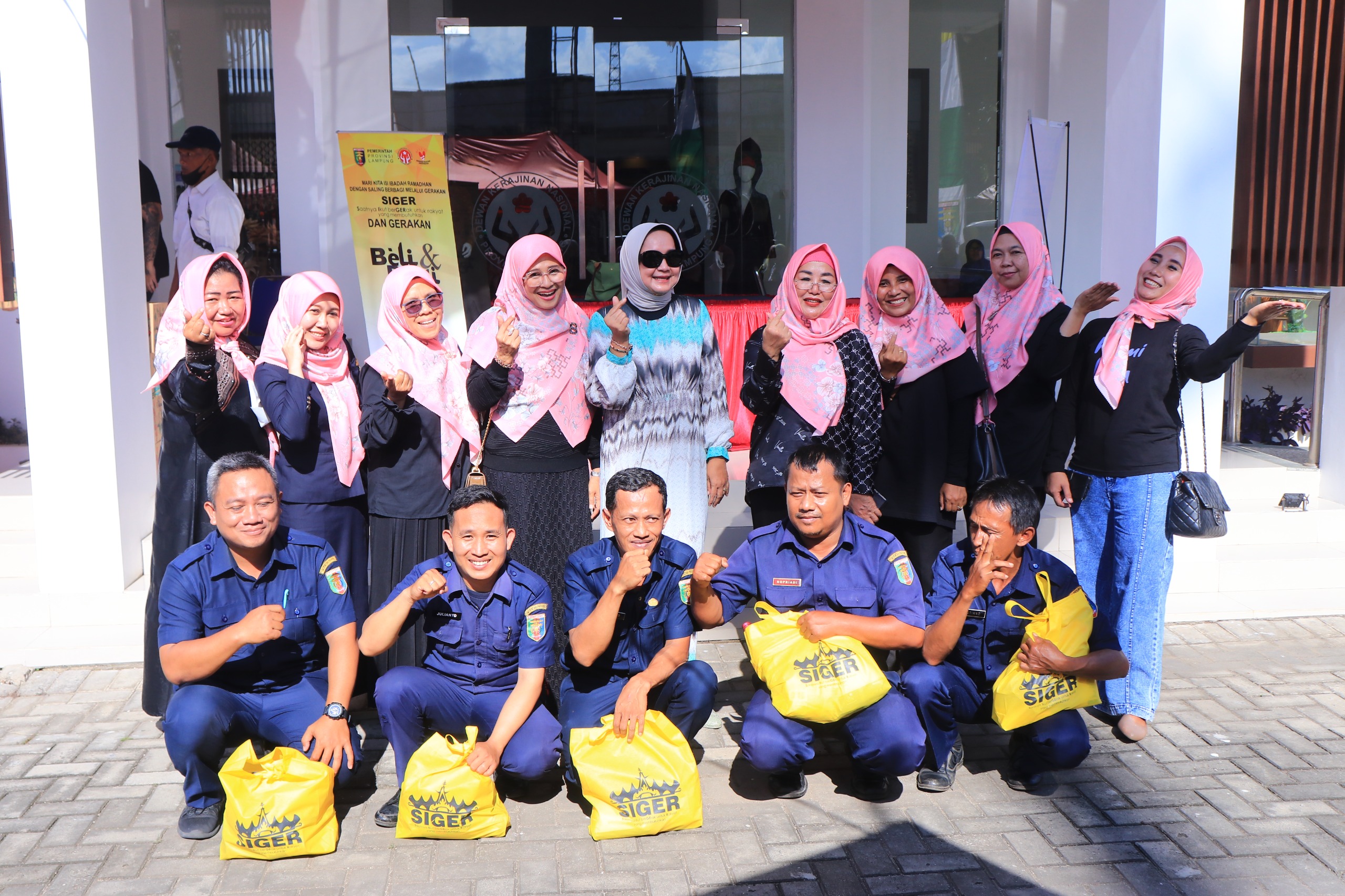 Pembagian takjil dilakukan oleh Ketua Dharma Wanita Persatuan Dinas Kominfotik Provinsi Lampung Bettiy Luvieta Muchsin didampingi Kepala Dinas Kominfotik Provinsi Lampung Achmad Saefullah dan segenap jajaran Dharma Wanita Persatuan Dinas Kominfotik Provinsi Lampung yang merupakan bagian kegiatan SIGER Beli dan Bagi (Saatnya Ikut berGerak untuk rakyat yang membutuhkan).