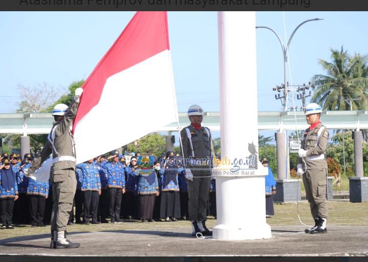 PESISIR BARAT–Pemerintah Kabupaten Pesisir Barat menggelar upacara peringatan Hari Ulang Tahun (HUT) Provinsi Lampung ke-60, di Halaman Komplek Perkantoran Pemkab Pesibar, Senin (19/3/2024).