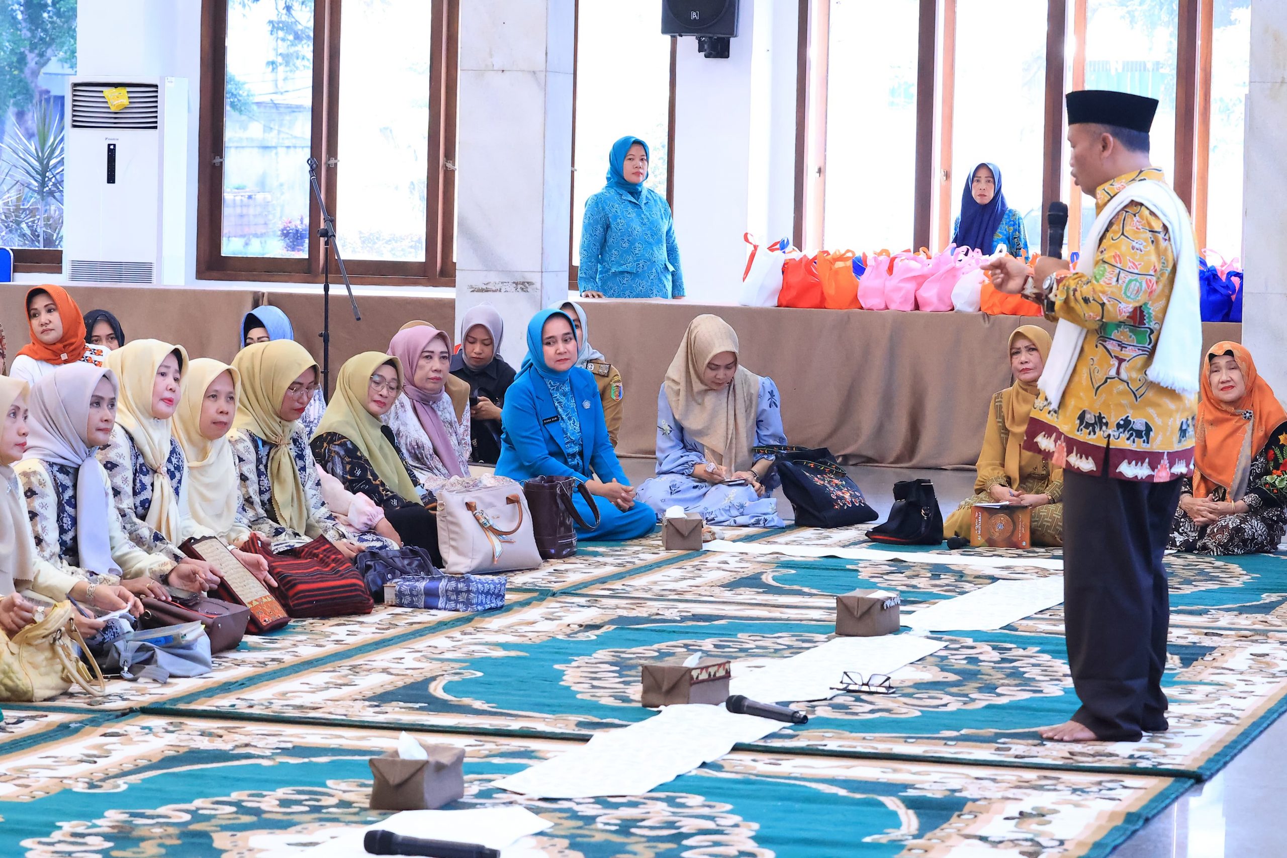 Bandar Lampung — Ketua TP PKK Provinsi Lampung Riana Sari Arinal mengikuti Pengajian Rutin Bulan Ramadan 1445 H bertempat di Mahan Agung, Senin (25/03/2024).