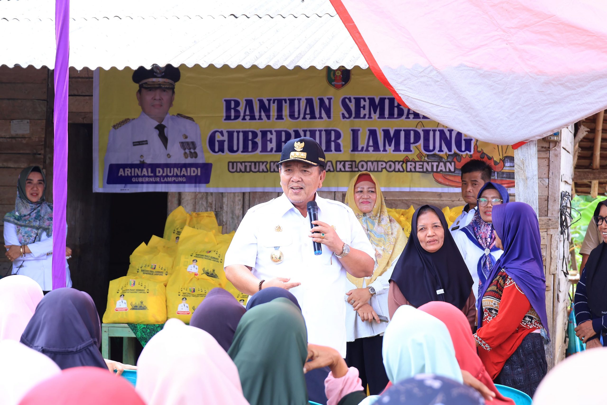 Pada kesempatan tersebut sejumlah paket sembako dan dua buah kursi roda diserahkan secara langsung oleh Gibernur Arinal kepada masyarakat yang membutuhkan.