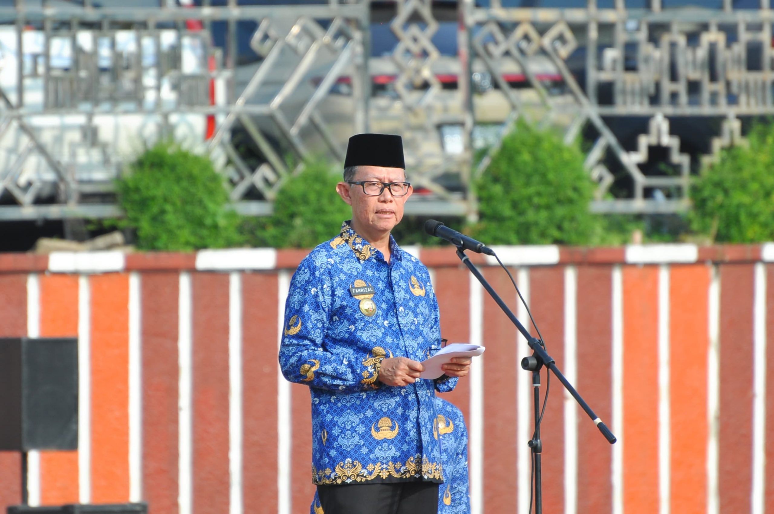 Bandar Lampung — Sekdaprov Fahrizal Darminto menjadi Pembina Upacara Bulanan di lingkungan Pemerintah Provinsi Lampung, di Lapangan Korpri Komplek Kantor Gubernur, Rabu (17/04/2024).