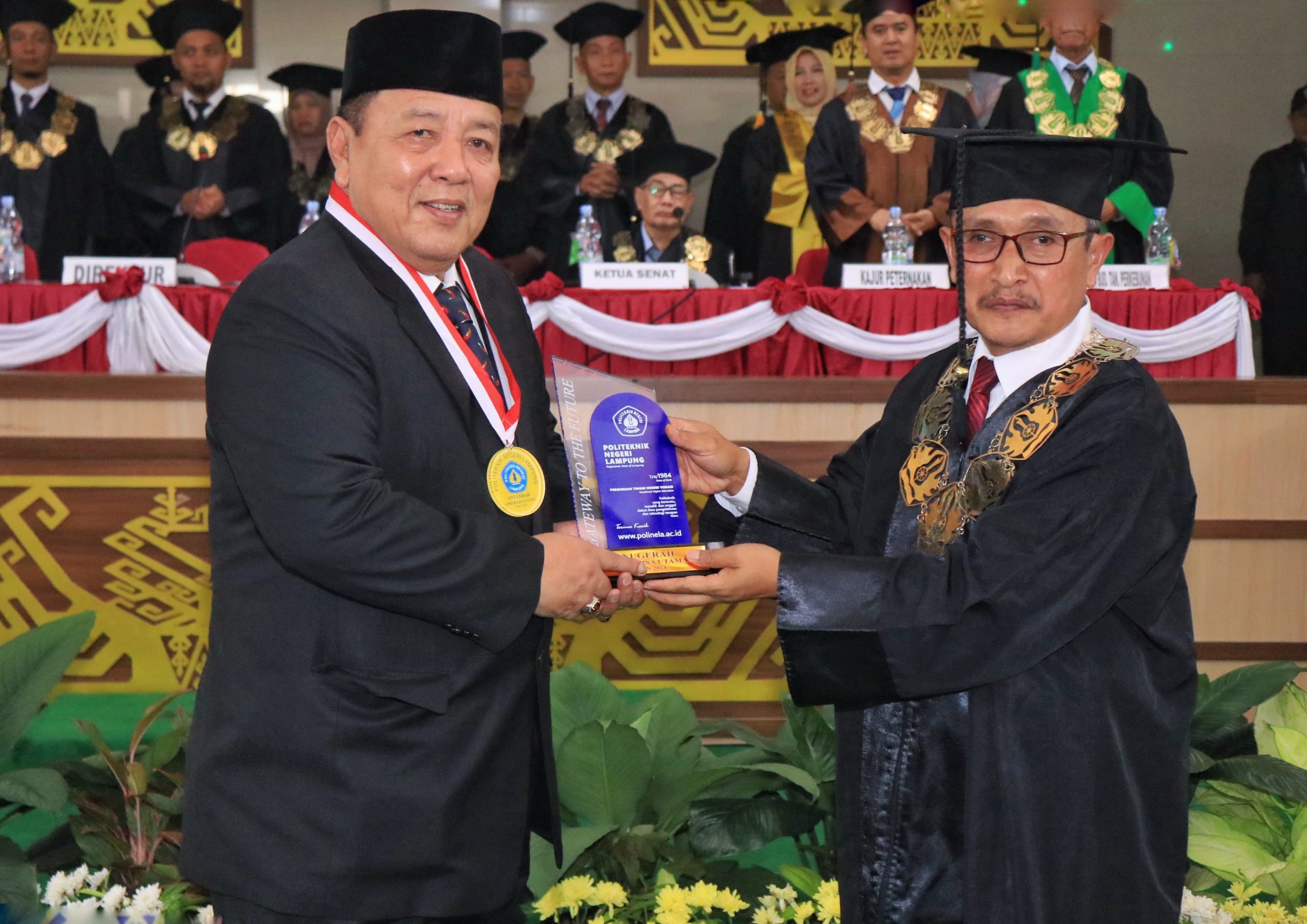 Gubernur Lampung dalam kesempatan tersebut menyampaikan ucapan terimakasih atas penghargaan yang telah diberikan oleh Politeknik Negeri Lampung.