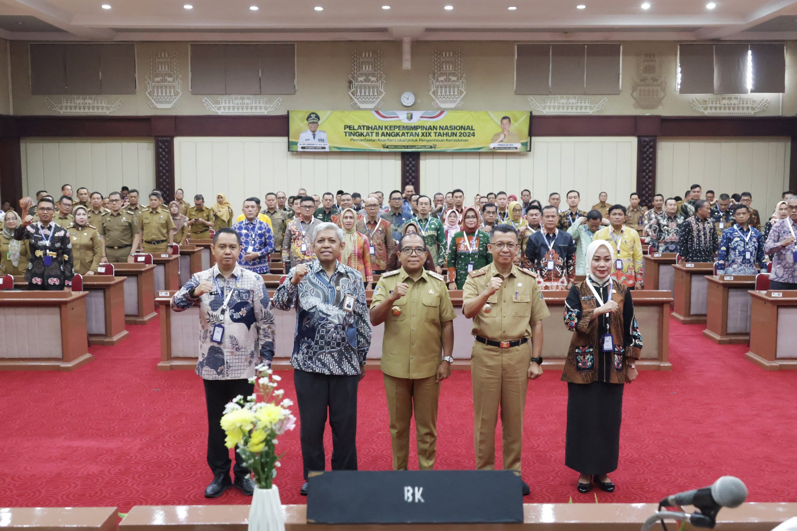 Bandar Lampung — Pj. Gubernur Lampung Dr. Drs. Samsudin S.H.,M.H.,MPd., membuka secara resmi Pelatihan Kepemimpinan Nasional (PKN) Tingkat II angkatan XIX Tahun 2024 di Gedung Pusiban, Senin (24/06/2024).