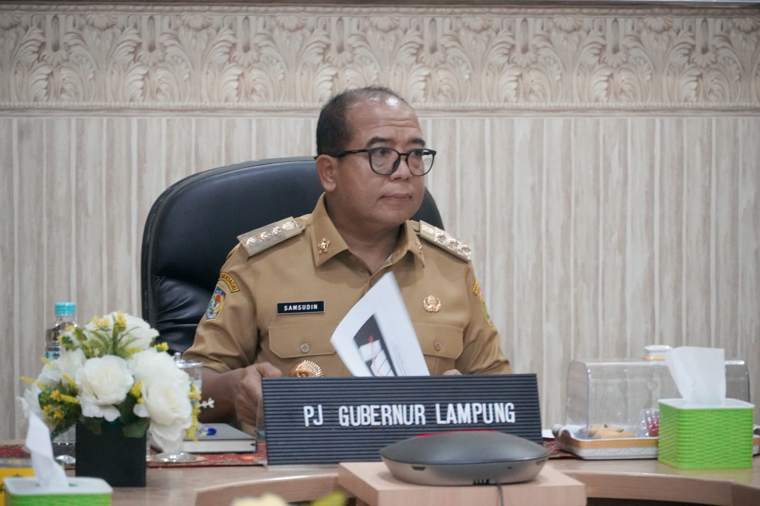 Bandar Lampung — Penjabat Gubernur Lampung Samsudin mengikuti Rapat Koordinasi yang dipimpin Menteri Dalam Negeri RI, terkait Pengendalian Inflasi Daerah yang dirangkaikan dengan Penanggulangan Kejadian Luar Biasa Polio secara virtual, di Ruang Command Center Lt. II Dinas Kominfotik Provinsi Lampung, Senin, (24/06/2024).