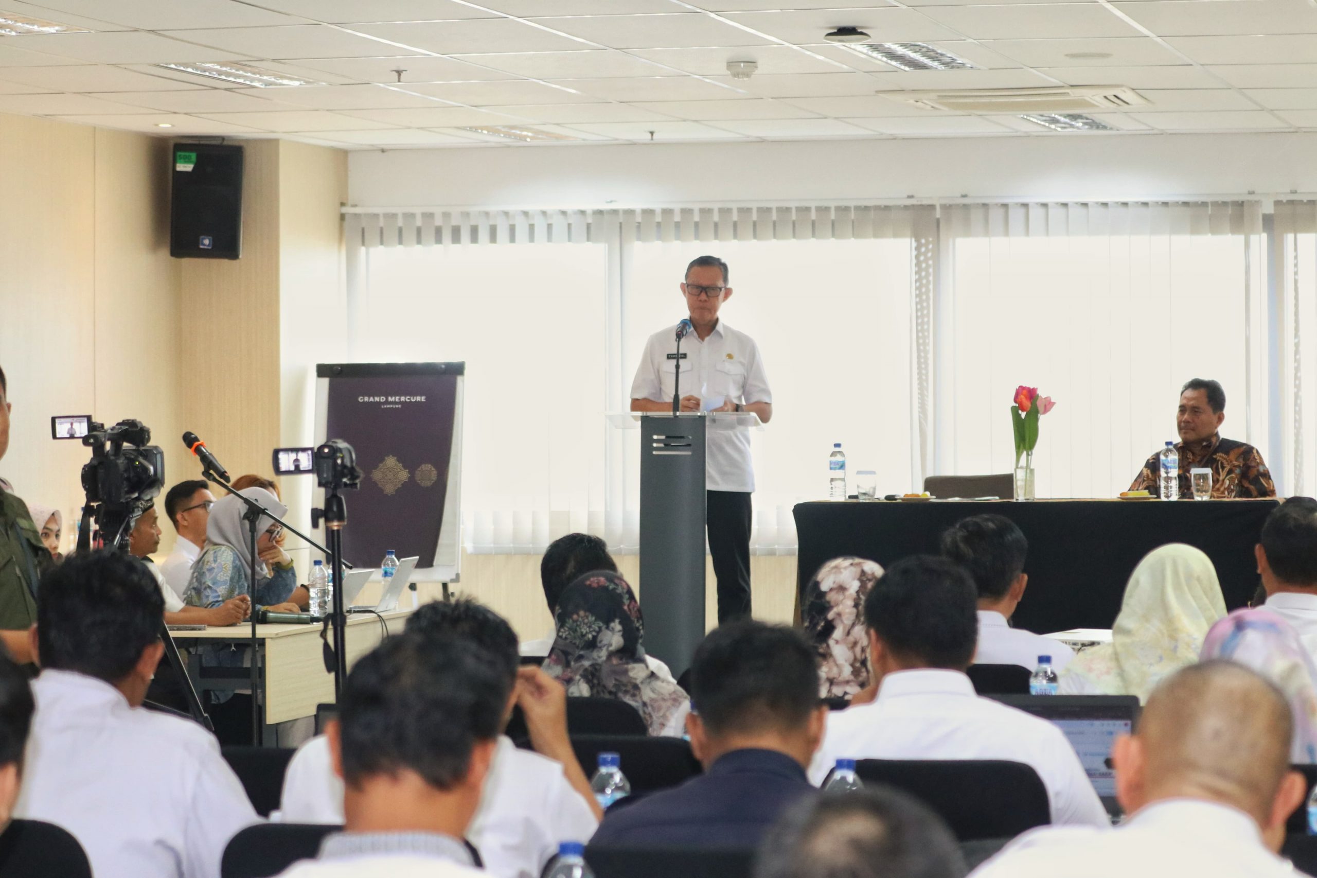 BANDARLAMPUNG—Penjabat Gubernur Lampung Samsudin diwakili oleh Sekretaris Daerah Provinsi Lampung Fahrizal Darminto membuka secara resmi Acara Evaluasi Sistem Akuntabilitas Kinerja Instansi Pemerintah (SAKIP) Provinsi Lampung Tahun 2024, di Ruang Pertemuan Acacia, Hotel Grand Mercure, Kamis (25/07/2024).