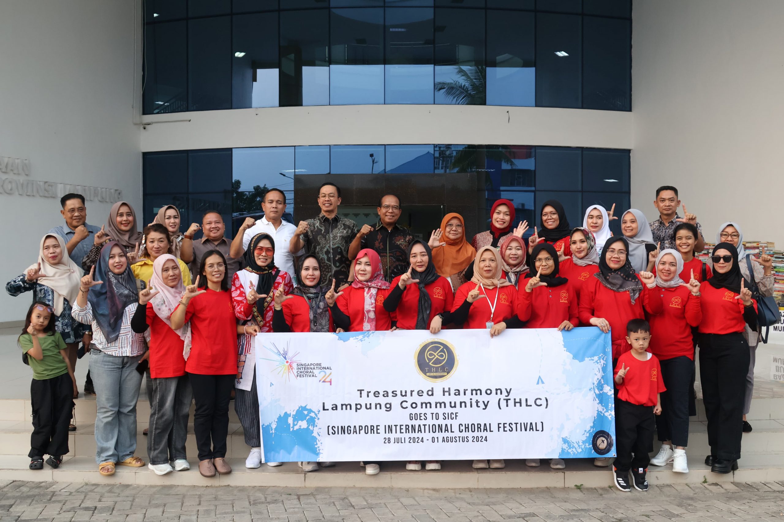 Pj. Gubernur melepas tim Paduan Suara Treasured Harmony Lampung Community (THLC) ke Singapore dalam rangka mengikuti kompetisi Internasional “Singapore International Choral Festival (SICF)”.