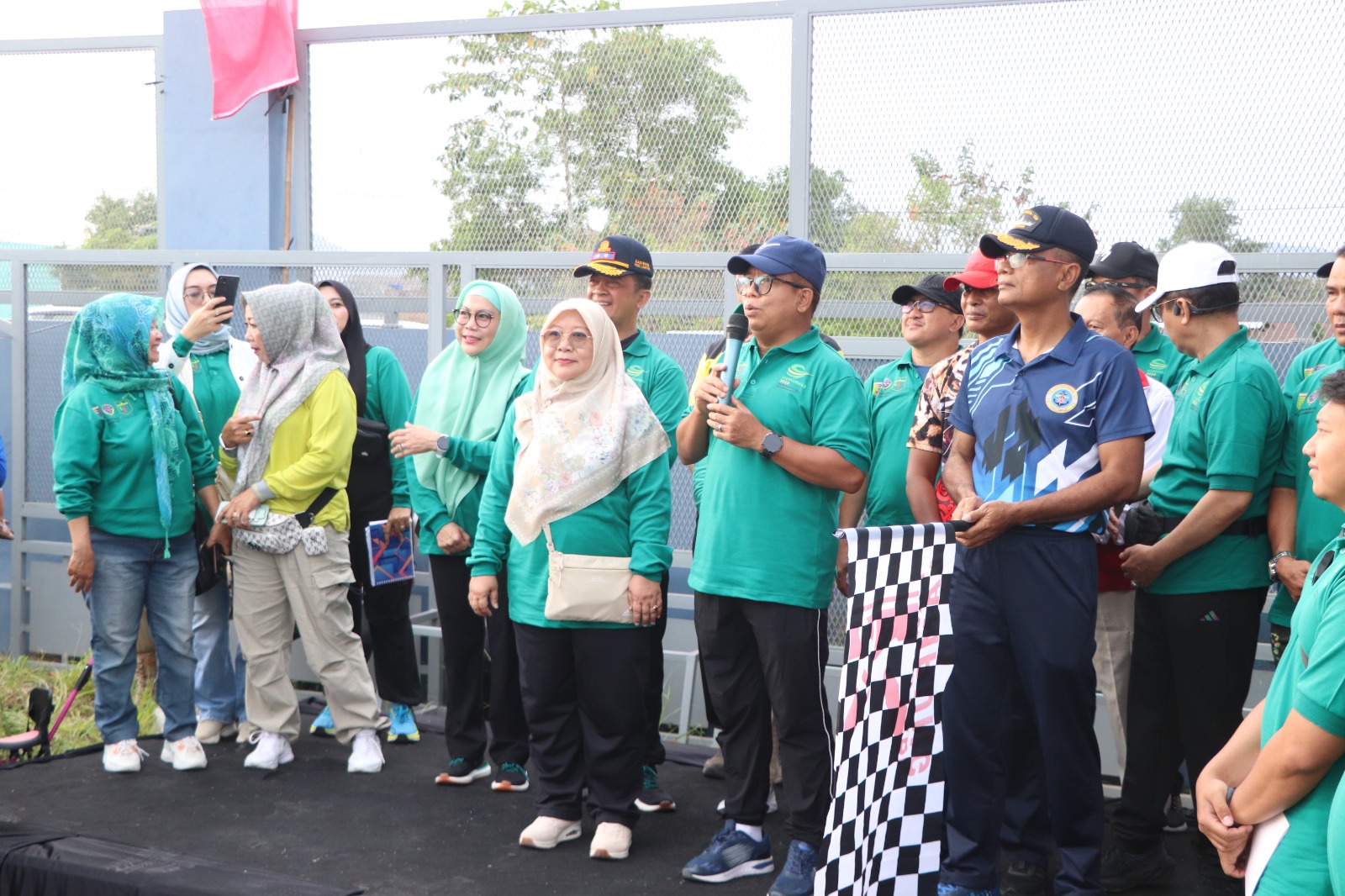 Jati Agung — Penjabat (Pj) Gubernur Lampung Samsudin melepas peserta jalan sehat bersama Mitra Perhubungan Provinsi Lampung dalam rangka peringatan Hari Perhubungan Nasional Tahun 2024, di Kantor Dinas Perhubungan Jati Agung Provinsi Lampung, Minggu (22/09/2024).