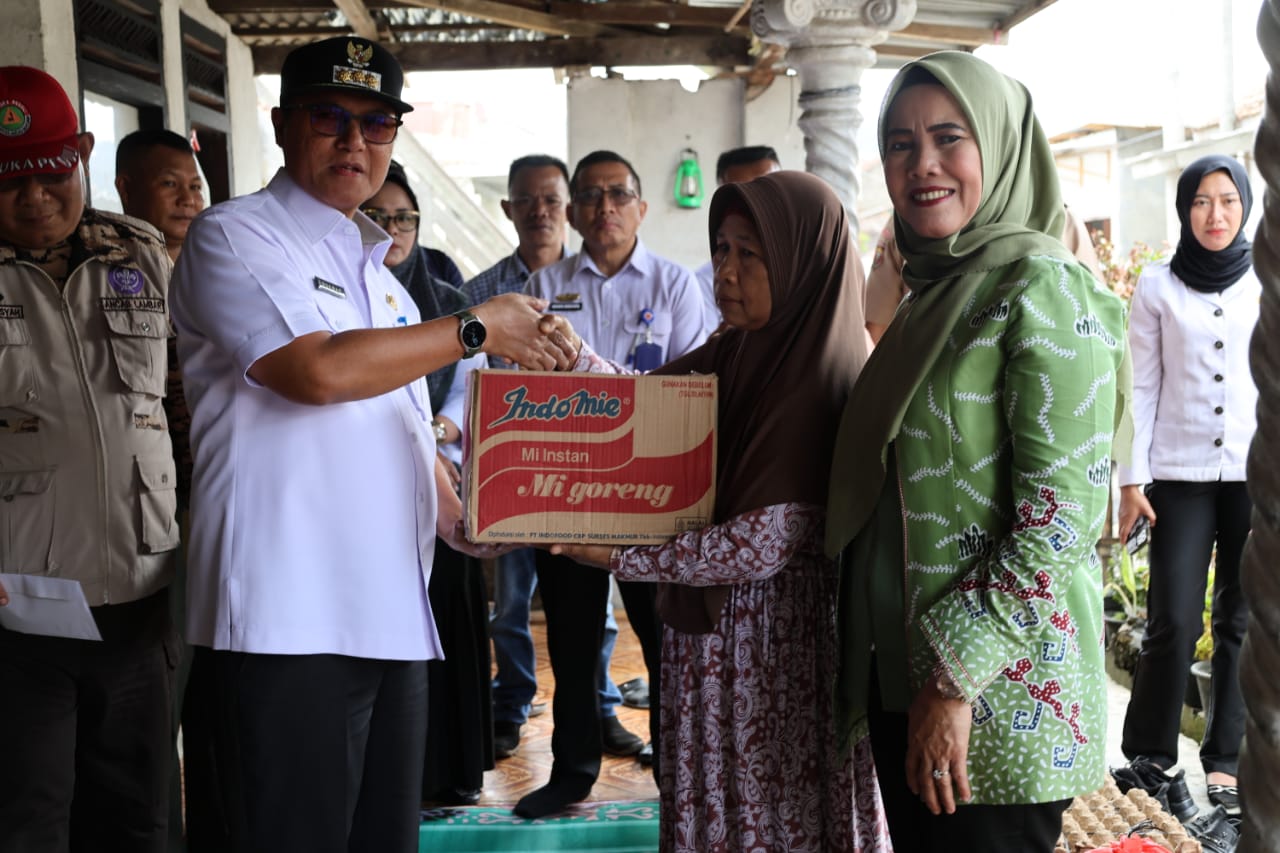 LAMPUNG BARAT—Penjabat (Pj) Bupati Lampung Barat Drs. Nukman, M.M meninjau lokasi kebakaran rumah milik Meri Silviasari warga Sinar Jaya, Kelurahan Fajar Bulan, Kecamatan Way Tenong, Rabu 12 Februari 2025.