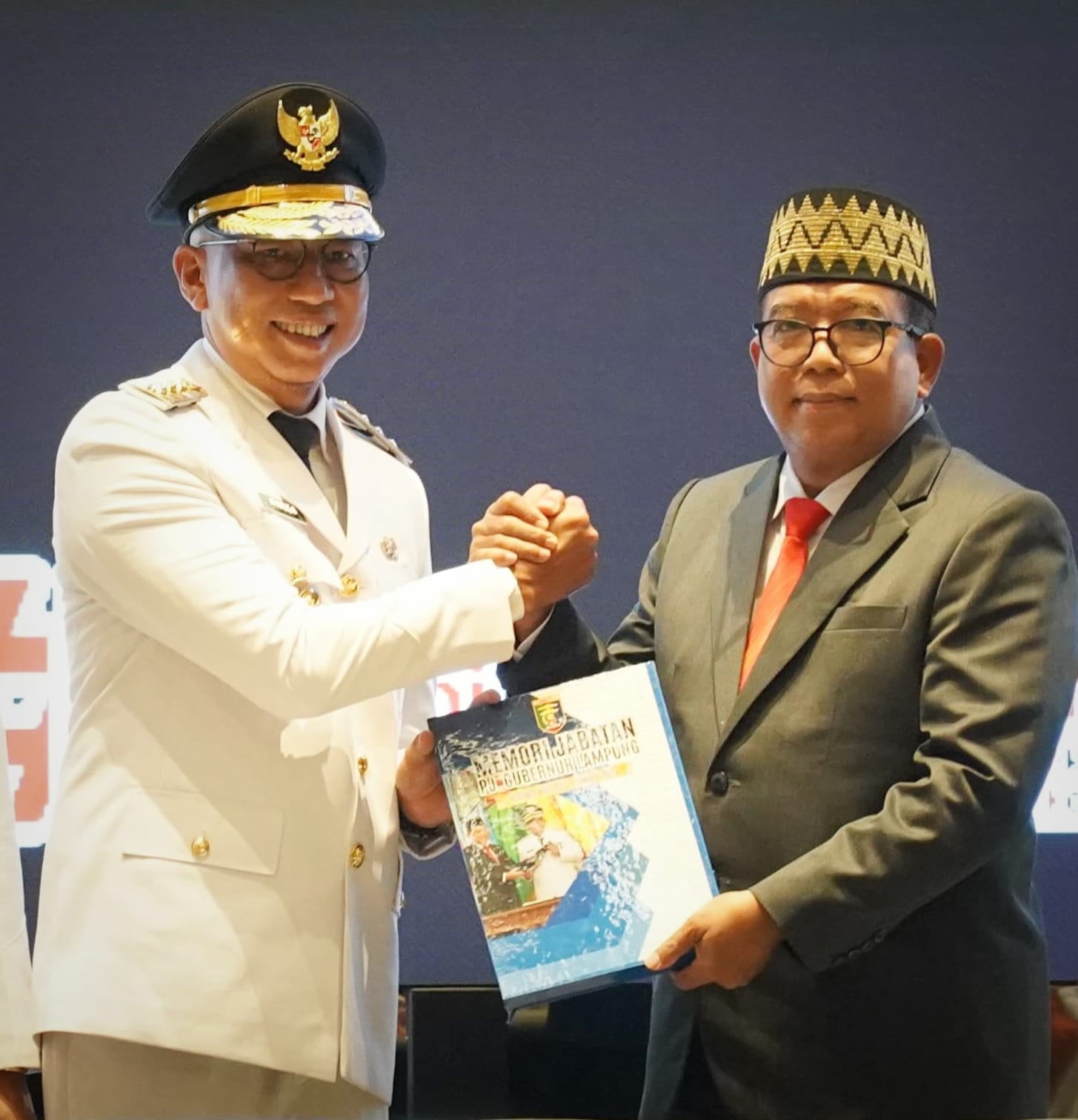 Jakarta — Gubernur Lampung, Rahmat Mirzani Djausal, didampingi Wakil Gubernur Lampung, Jihan Nurlela, melaksanakan serah terima jabatan Gubernur dan Bupati/Walikota se-Provinsi Lampung, di Movenpick Hotel Jakarta, Kamis (20/02/2025).