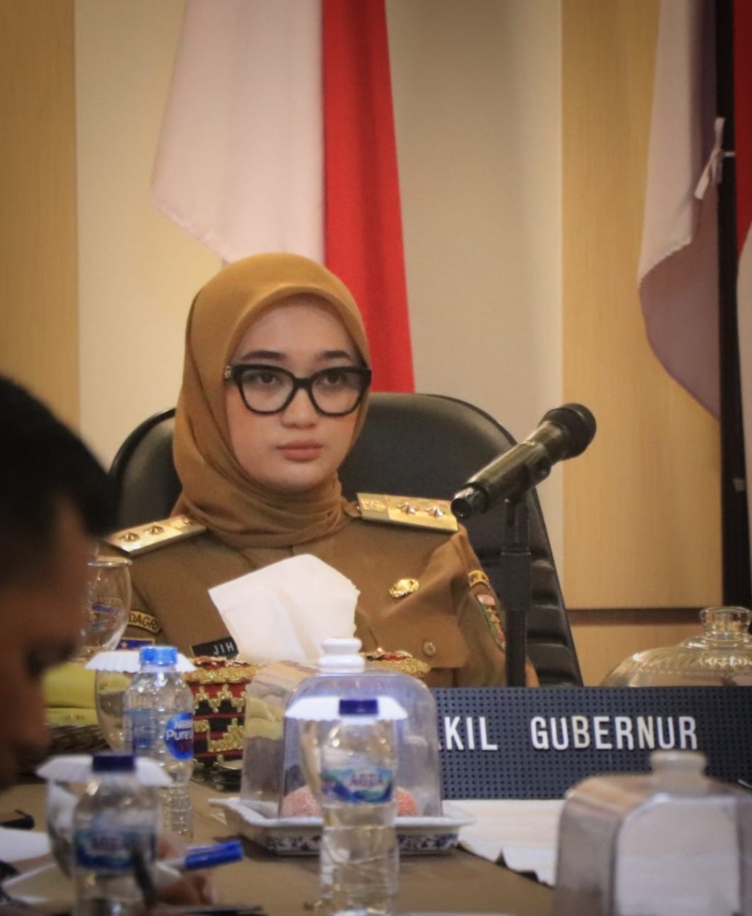 Bandar Lampung — Wakil Gubernur Lampung, Jihan Nurlela, mengikuti Rapat Koordinasi Pengendalian Inflasi Daerah secara virtual bertempat di ruang Sakai Sambayan, Senin (24/2/2025).