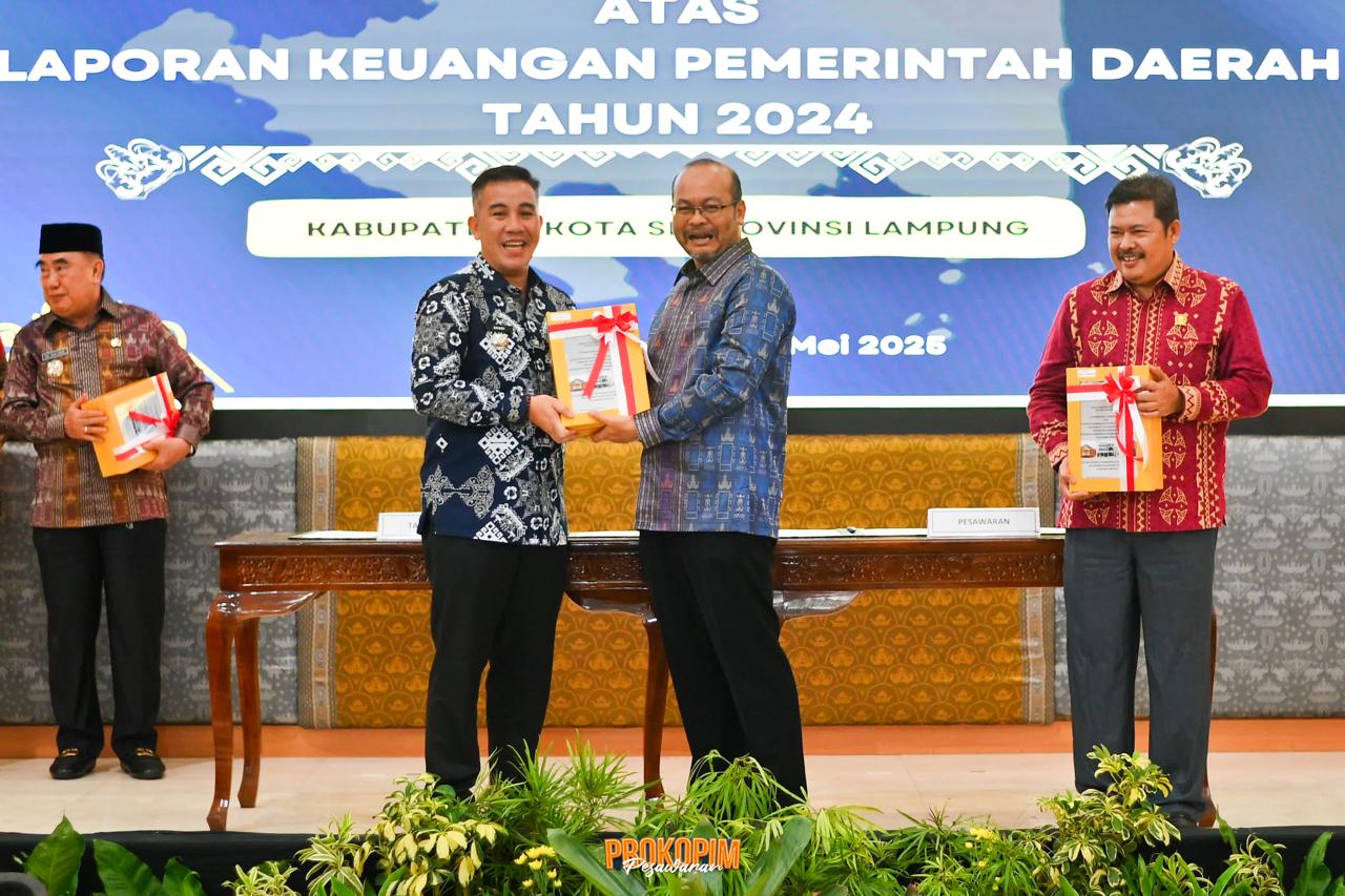 Pesawaran – Pemerintah Kabupaten (Pemkab) Pesawaran kembali memperoleh opini Wajar Tanpa Pengecualian (WTP) atas Laporan Keuangan Pemerintah Daerah (LKPD) Tahun Anggaran 2024 dari Badan Pemeriksa Keuangan (BPK) RI Perwakilan Provinsi Lampung. Capaian ini menjadi raihan WTP kesembilan secara berturut-turut bagi Pemkab Pesawaran.