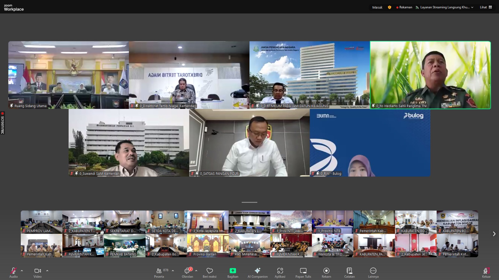 Bandar Lampung — Pemerintah Provinsi Lampung yang diwakili Staf Ahli Bidang Ekonomi, Keuangan dan Pembangunan (Ekubang) Zainal Abidin mengikuti Rapat Koordinasi Pengendalian Inflasi Daerah (secara virtual) bertempat di Ruang Command Center Lt. II Dinas Kominfotik Provinsi Lampung, Senin (16/06/2025).