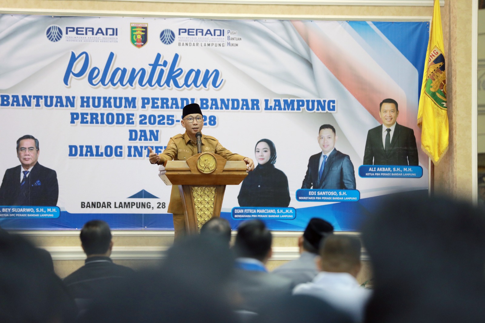Hal tersebut disampaikan Gubernur Mirza saat menghadiri Pelantikan PBH Peradi Bandar Lampung Periode 2025-2028 di Balai Keratun, Lantai 3, Komplek Kantor Gubernur, Bandar Lampung, Senin (28/7/2025).