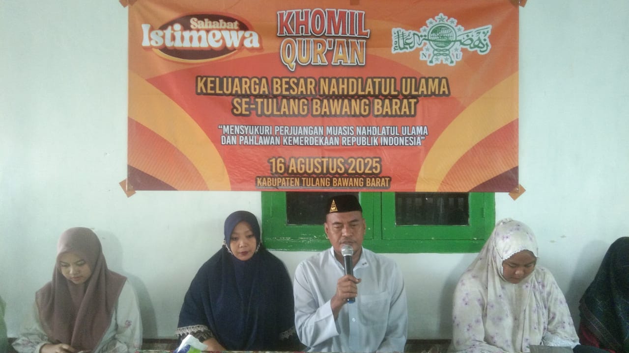 Ketua Tanfidziyah PCNU Tubaba, KH. Nurhadi, S.Pd.I, menyampaikan bahwa, Khotmil Qur’an serentak ini bukan hanya seremonial, tetapi merupakan bentuk penguatan spiritual dan cinta tanah air.“Kemerdekaan adalah amanah yang harus dijaga, dan Al-Qur’an adalah petunjuk yang harus kita pegang. Dengan membaca dan mengkhatamkan Al-Qur’an, kita berharap Indonesia semakin berkah, persatuan semakin kuat, dan generasi muda NU siap melanjutkan perjuangan para pendahulu,” ujarnya penuh semangat.