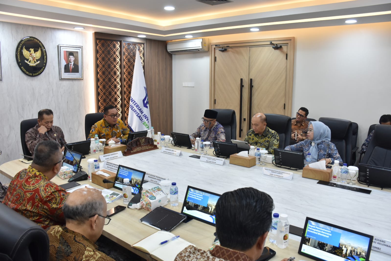 JAKARTA – Gubernur Lampung Rahmat Mirzani Djausal mengikuti Rapat Percepatan Rencana Investasi Bioetanol bersama Wakil Menteri Investasi Todotua Pasaribu dan Menteri Koperasi dan UKM Ferry Juliantono, di Kantor Kementerian Investasi dan Hilirisasi di Jakarta, Kamis (23/10/2025).