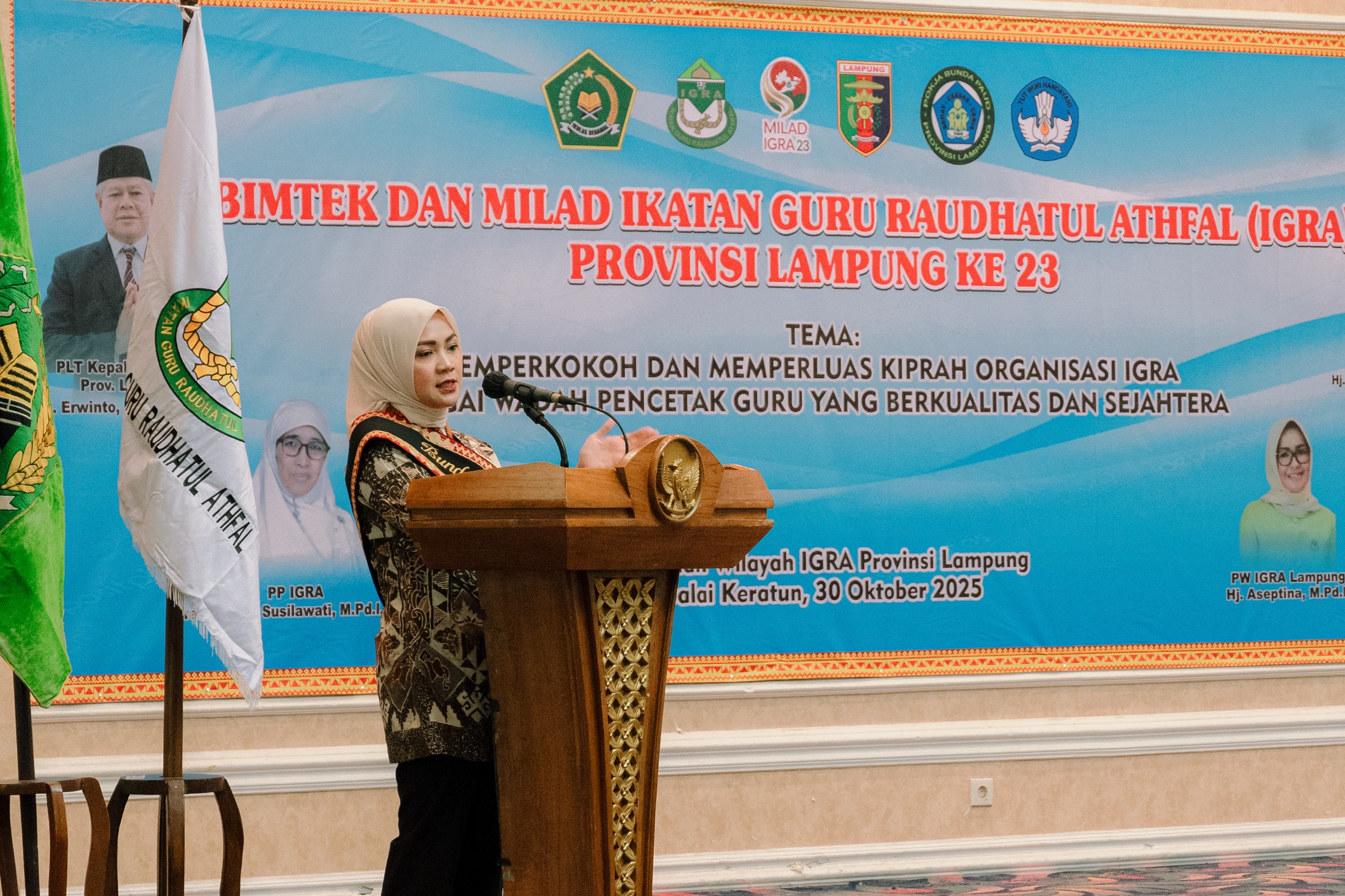 Kegiatan ini digelar dalam rangka memperingati Milad Ikatan Guru Raudhatul Athfal (IGRA) ke-23, bertempat di Balai Keratun Lantai III, Komplek Kantor Gubernur, Kamis (30/10/2025).
