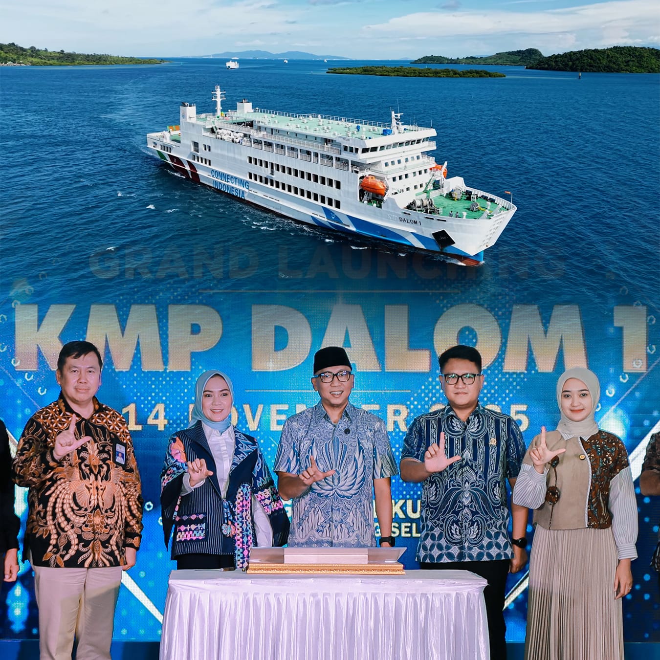 LAMPUNG SELATAN – Pemerintah Provinsi Lampung secara resmi meluncurkan Kapal Motor Penumpang (KMP) Dalom 1 sebagai Kapal Pertama Milik Pemerintah Provinsi Lampung sekaligus moda transportasi baru dalam lintas penyeberangan Sumatra–Jawa, yang berlangsung di Dermaga Eksekutif Bakauheni, Lampung Selatan, Jum’at (14/11/2025). Peresmian ini dilakukan langsung oleh Gubernur Lampung Rahmat Mirzani Djausal yang ditandai dengan penandatanganan prasasti, dilanjutkan dengan prosesi adat Hitar Lawok yang berlangsung di Dermaga 4.