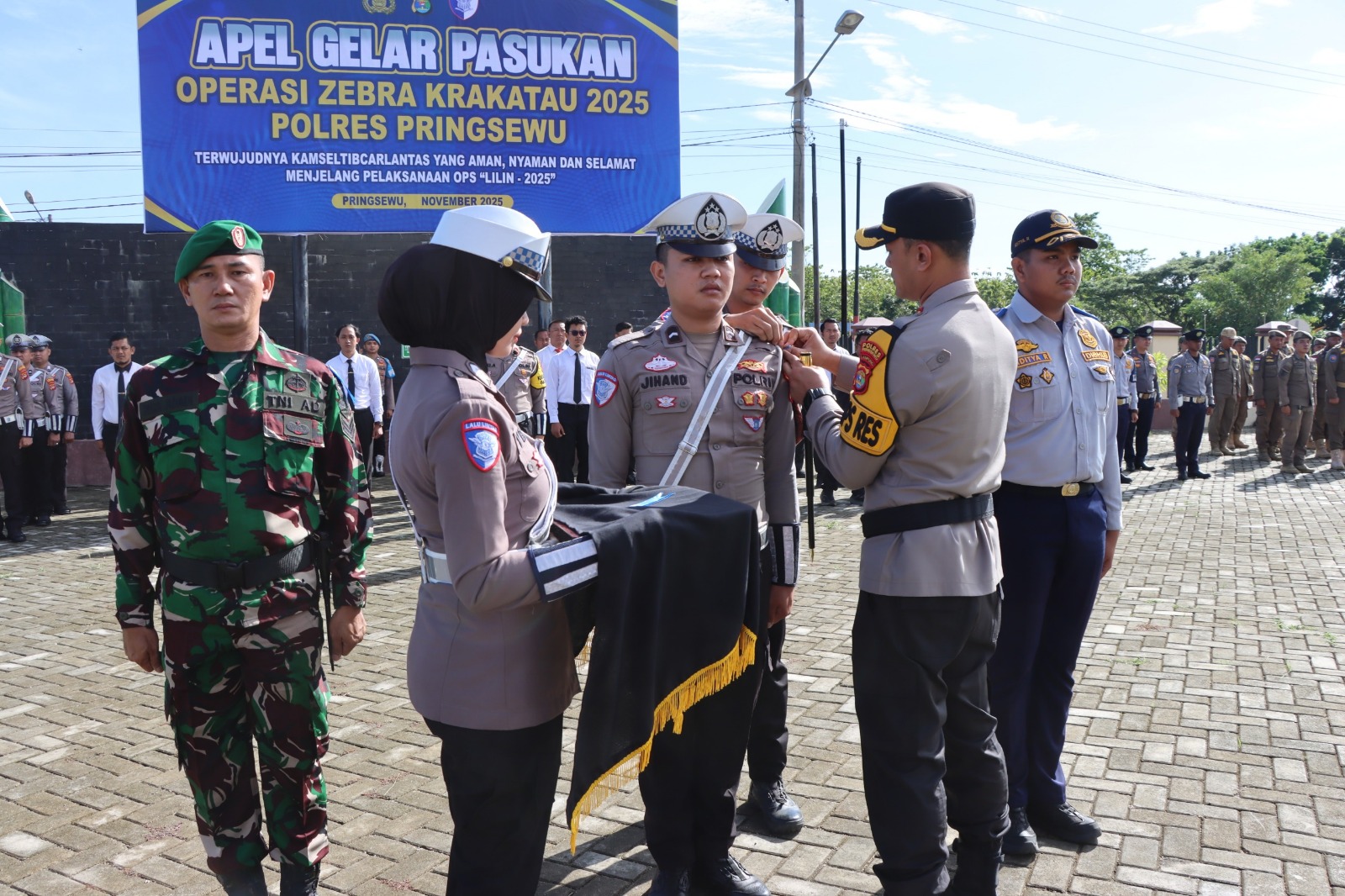 PRINGSEWU – Polres Pringsewu menggelar Apel Pasukan dalam rangka Operasi Zebra Krakatau 2025, Senin (17/11/2025), di halaman Mapolres Pringsewu. Apel dipimpin Kapolres Pringsewu serta dihadiri Forkopimda, pejabat utama, dan perwakilan instansi terkait.