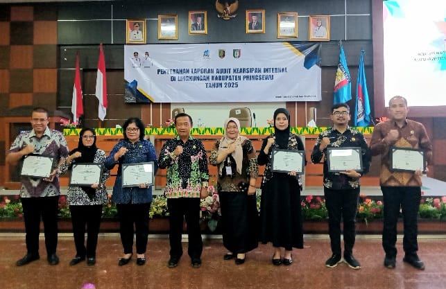Bupati Pringsewu Riyanto Pamungkas dalam sambutan tertulis yang dibacakan oleh Staf Ahli Bupati Pringsewu Bidang Pemerintahan, Hukum dan Politik, Hipni, S.E., M.M. pada acara penyerahan Laporan Audit Kearsipan Internal Pemerintah Kabupaten Pringsewu Tahun 2025 di Aula Utama Kantor Bupati Pringsewu, Kamis (20/11/2025), mengatakan arsip yang berada di lingkup pemerintahan berperan penting sebagai kumpulan informasi hasil kegiatan suatu organisasi pemerintah, yang didalamnya mencerminkan berbagai data dan keterangan mengenai pelaksanaan penyelenggaraan pemerintahan. Sekaligus merupakan bukti autentik tentang keberhasilan maupun kegagalan suatu pemerintahan di masanya, yang harus disusun secara terperinci dan berhati-hati.
