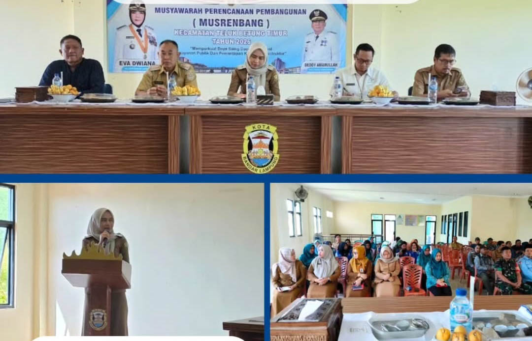Musrenbang Kecamatan Teluk Betung Timur yang dilaksanakan di Kelurahan Sukamaju menjadi forum penting untuk menyerap aspirasi masyarakat, menyelaraskan usulan program, serta menetapkan skala prioritas pembangunan berbasis kebutuhan wilayah. Kegiatan ini diikuti oleh unsur kecamatan, kelurahan, perangkat daerah, tokoh masyarakat, serta perwakilan lembaga dan pemangku kepentingan setempat.